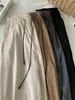 Calças largas com cordão, calças femininas de verão, cor sólida, finas, soltas, calças de dosagem, emagrecimento, cintura alta, retas, casuais