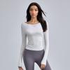 Modal Rib Mangas Compridas Yoga Suit Feminino Respirável Plissado Fitness Suit Slim-fit Sports Top Outono
