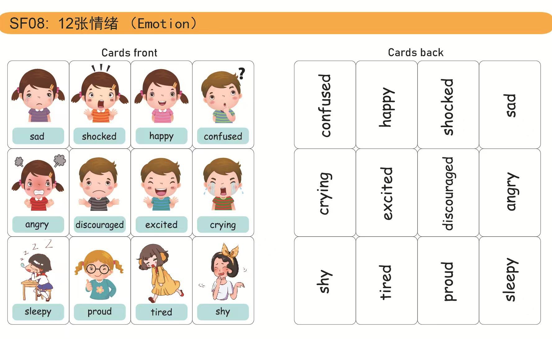 12 folhas/saco OPP (cor/transporte/família/emoções/partes do corpo/clima/esportes)
