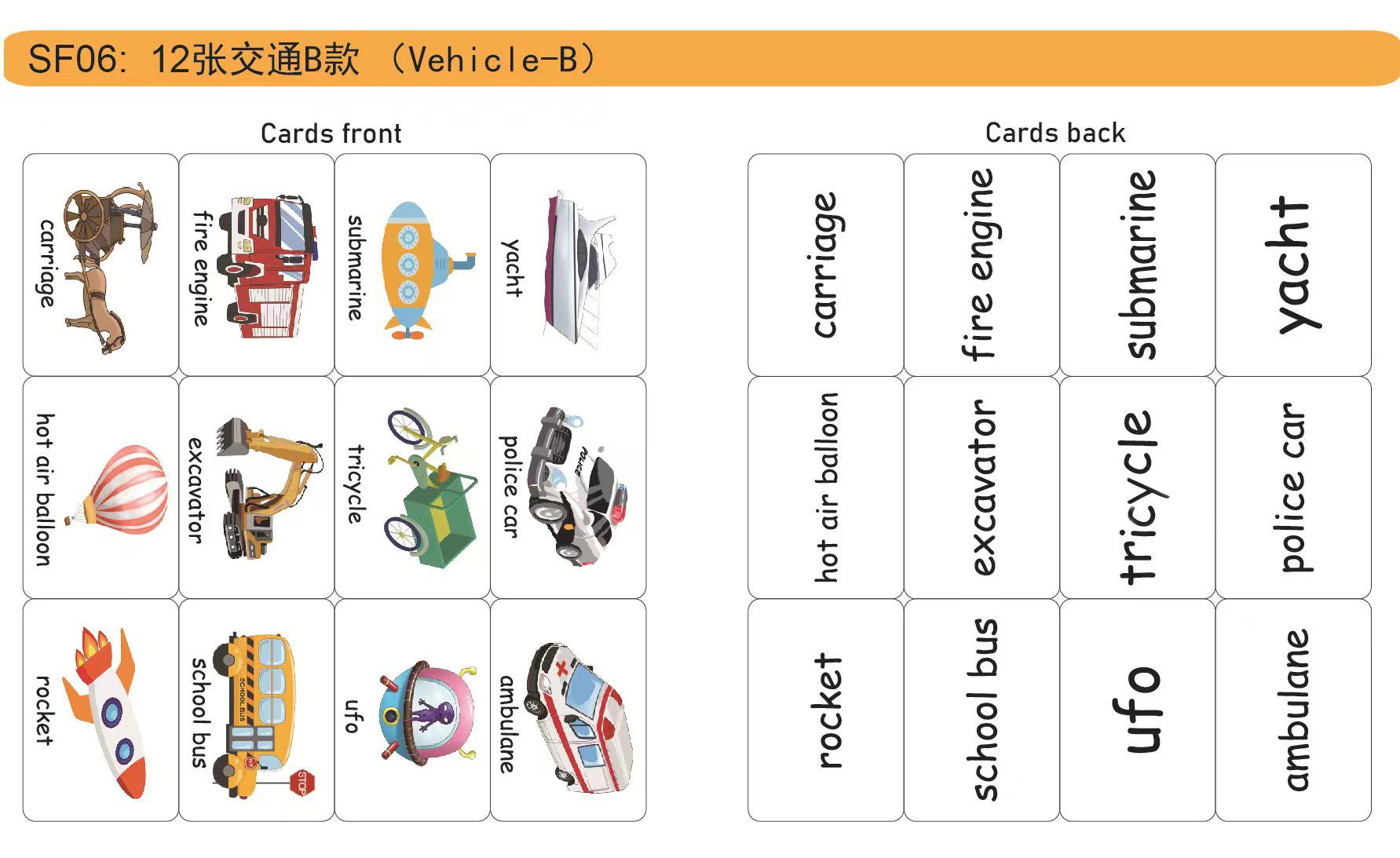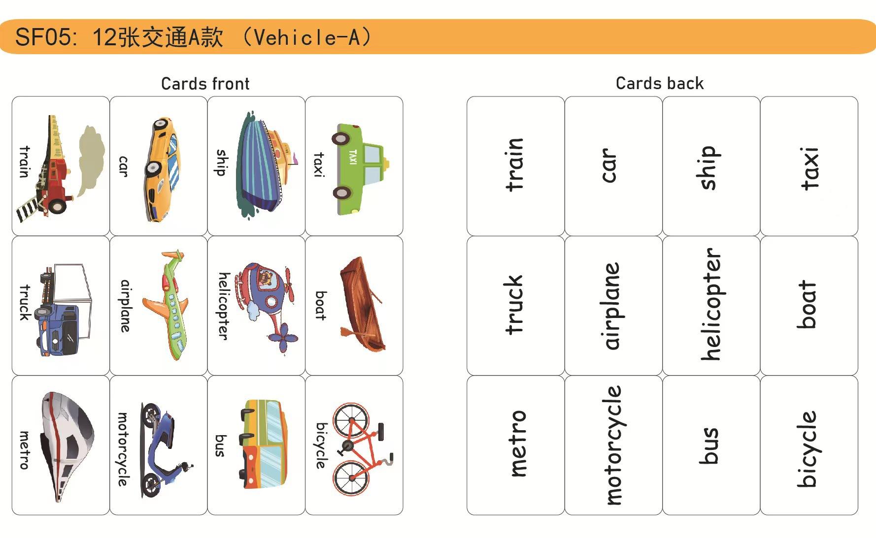 Carta de transporte familiar à prova d'água de plástico transfronteiriço local, cor de cartões de aprendizagem de inglês