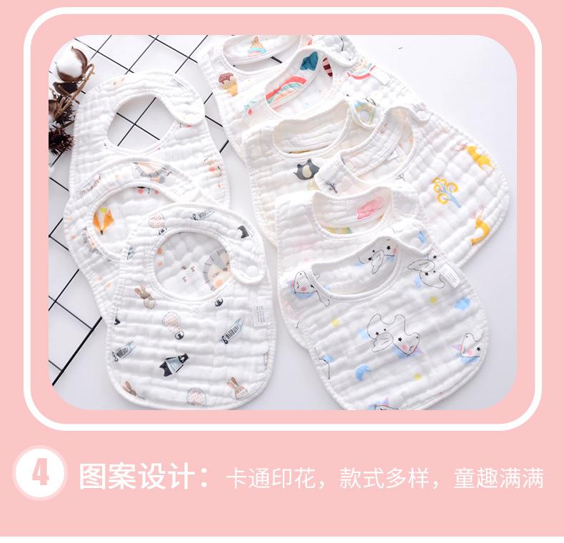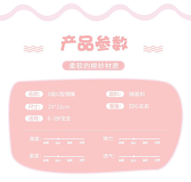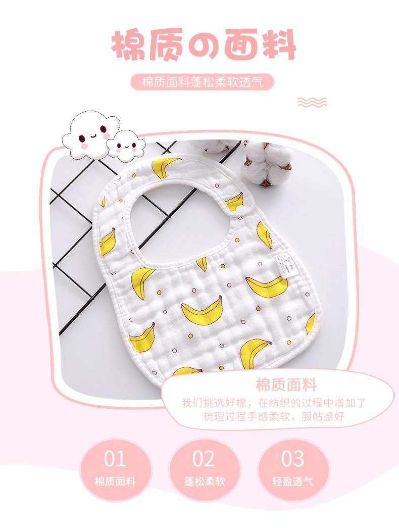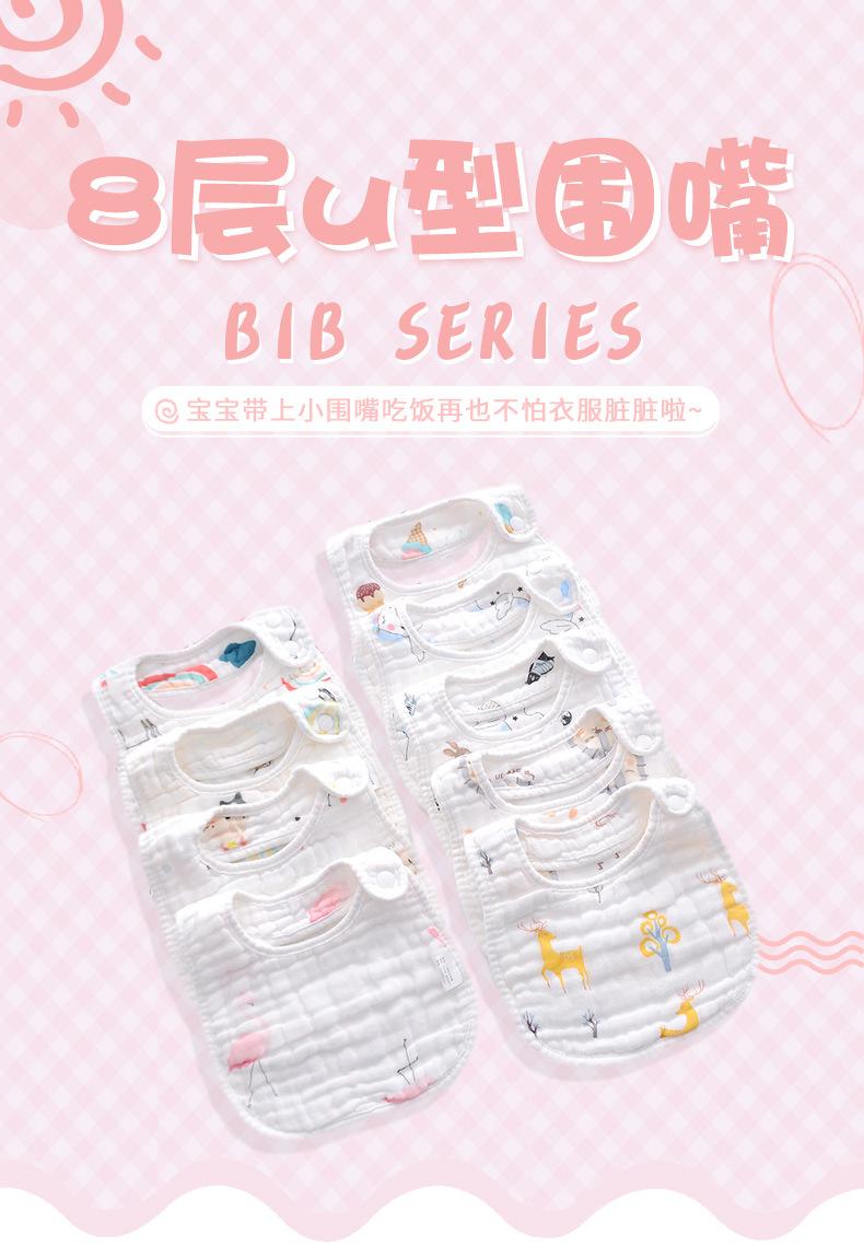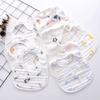 Babador de gaze em forma de U de 8 camadas atacado estampa de desenho animado fofo bebê bolso de arroz babador de toalha de saliva de bebê