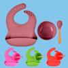 Talheres para alimentação de bebês babador de silicone tigela de bebê babador de silicone tigela de madeira colher conjunto de três peças atacado de fábrica