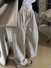 Calças listradas estilo coreano preguiçosas, aparência fina, calças largas femininas, cintura alta, todas as combinações, calças casuais soltas e retas para caminhadas, primavera e verão
