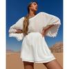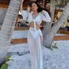 Vestido de verão sexy com perspectiva dividida e manga comprida, alça oca, estilo praia transfronteiriça, europeu e americano, 2025