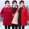 Casaco de lã feminino branco de inverno, forrado com lã, espessado, acolchoado de algodão, roupas para meia-idade e idosos, quentes, resistentes à sujeira, acolchoado de algodão, solto, comprimento médio, uso externo