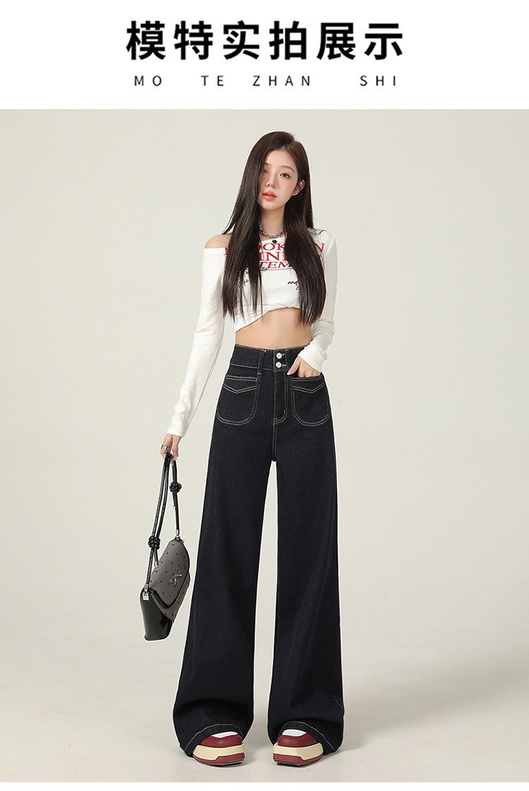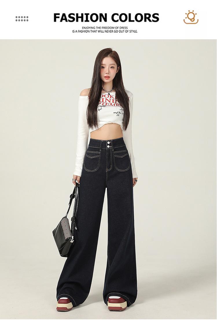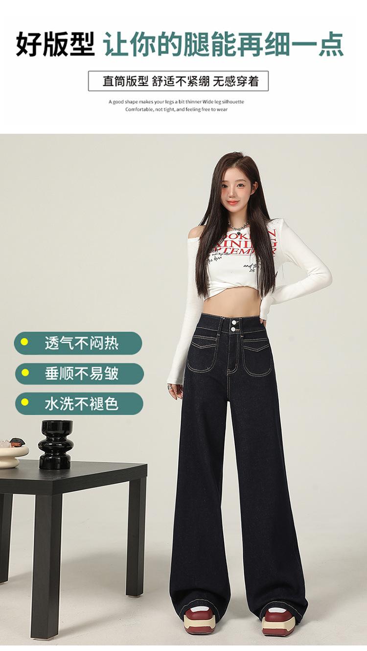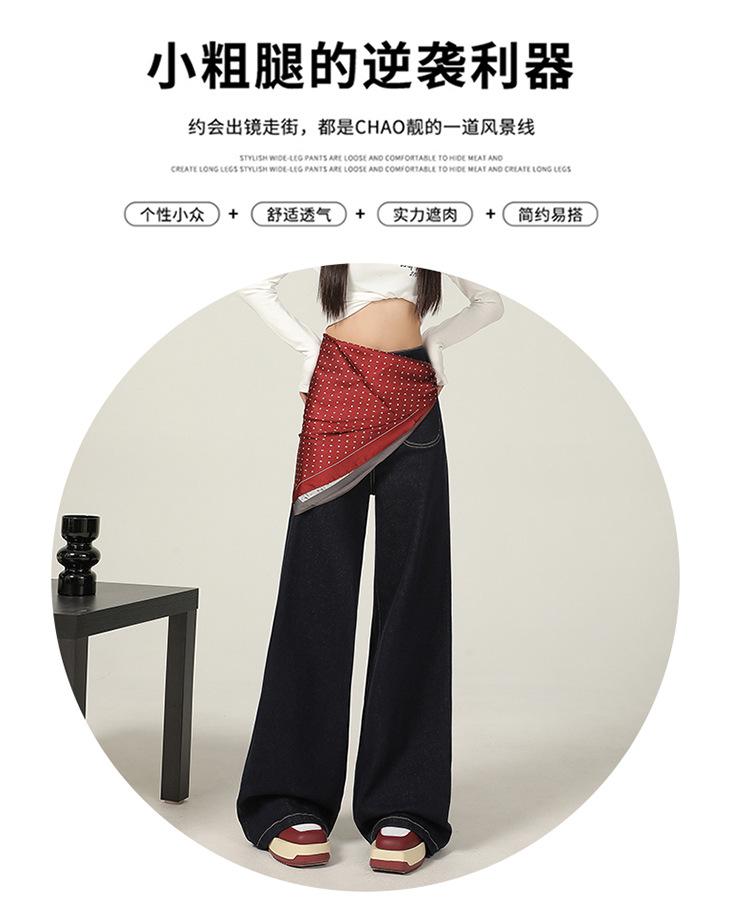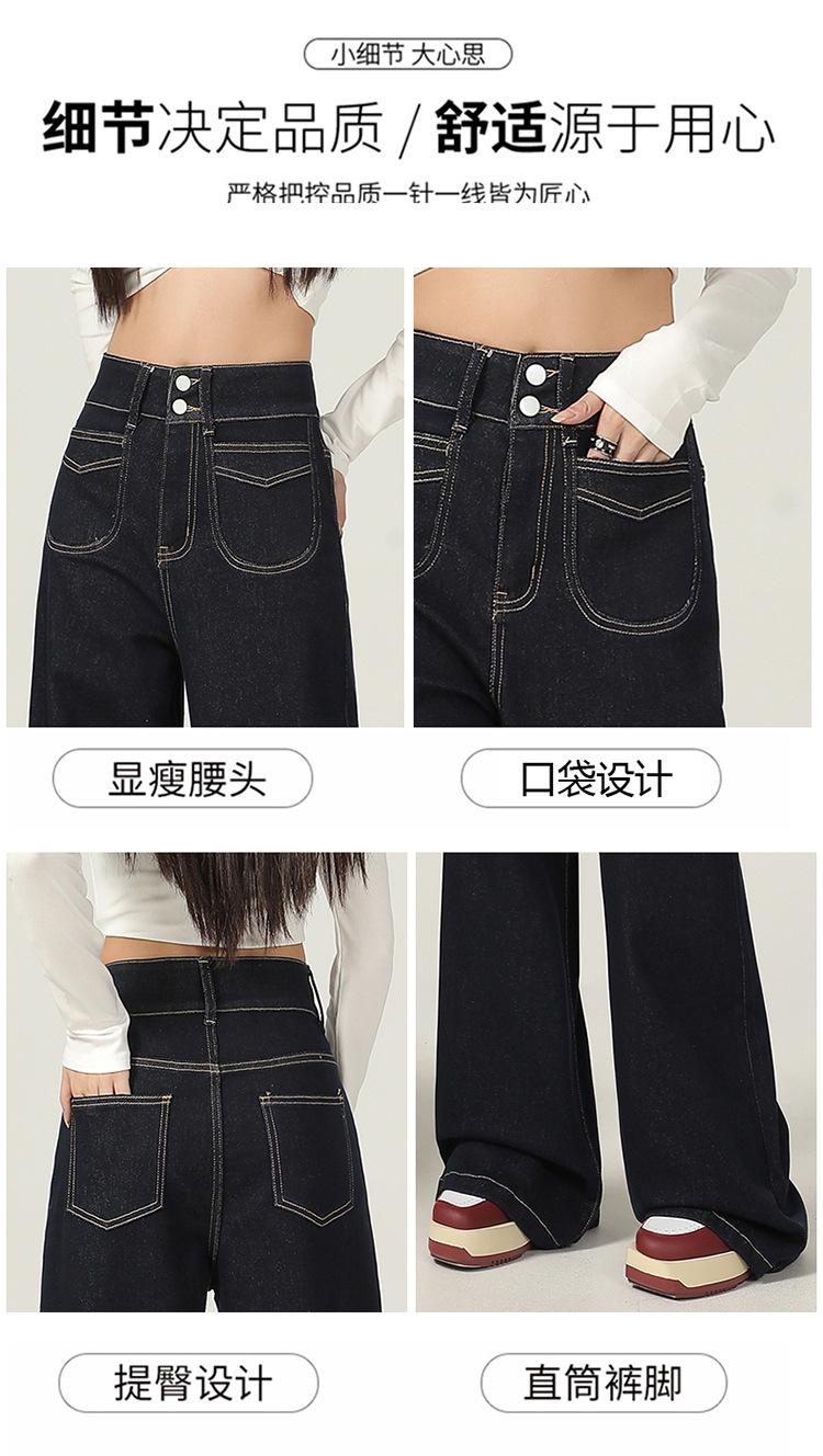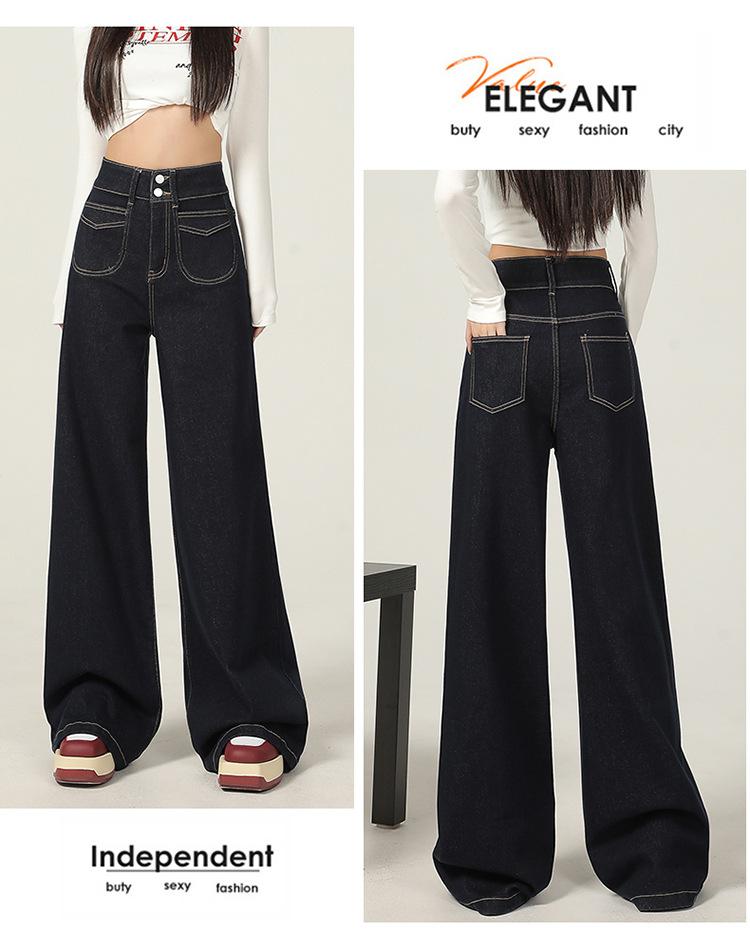 Young Orange# Jeans feminino com design de fivela dupla resistente ao desbotamento, perna larga, solto, emagrecedor, cobrindo a pele, elegante, para todos os gostos