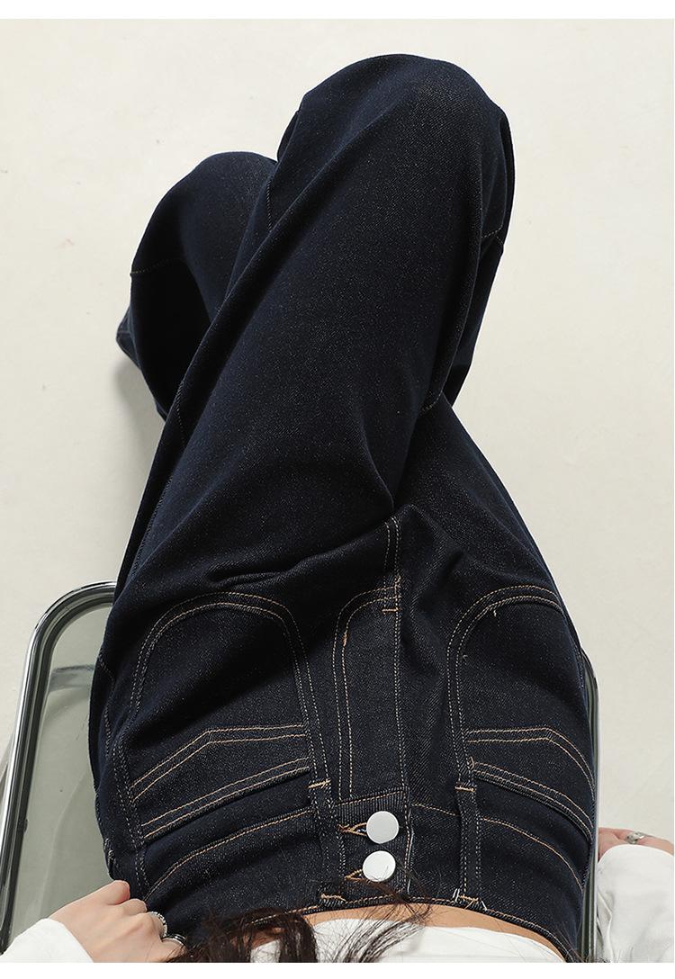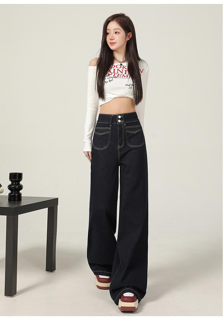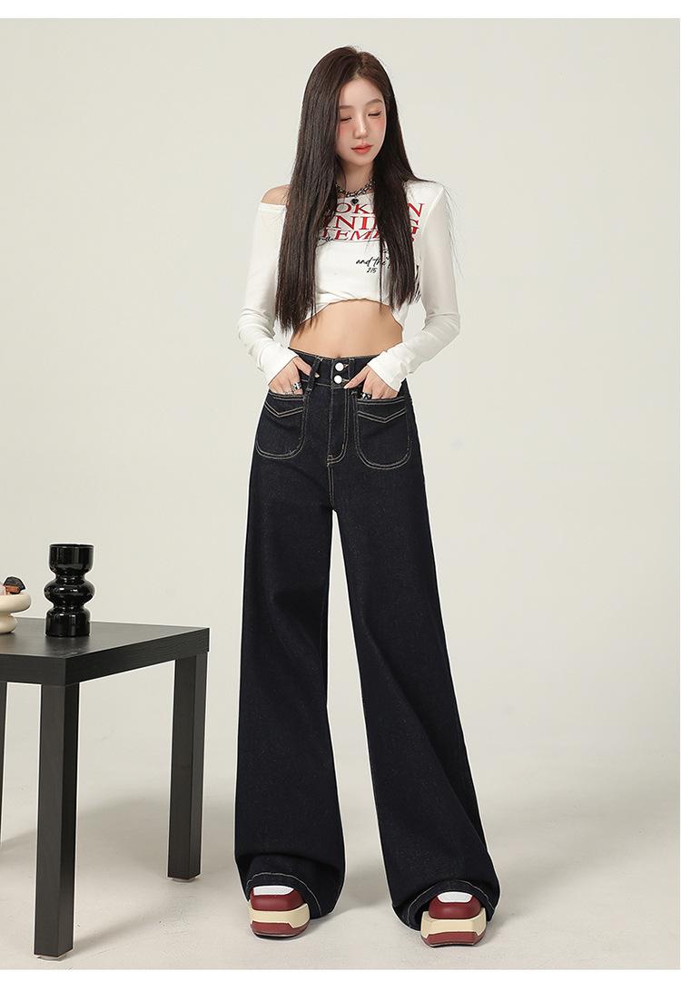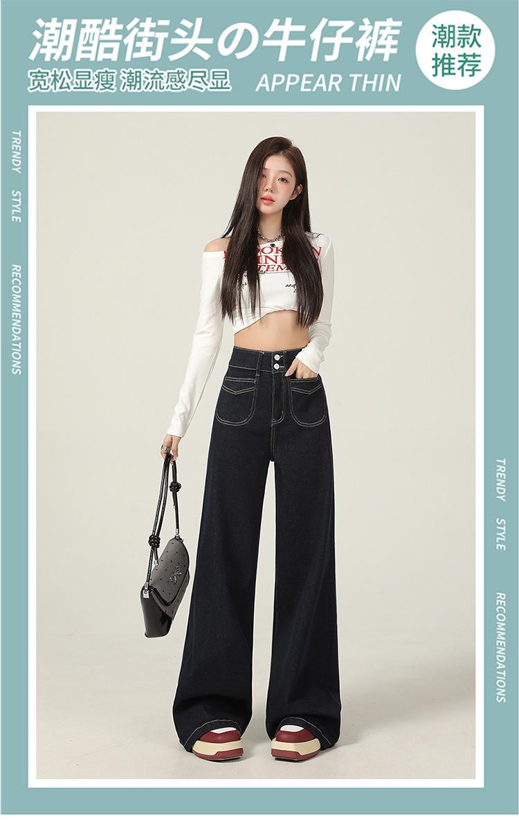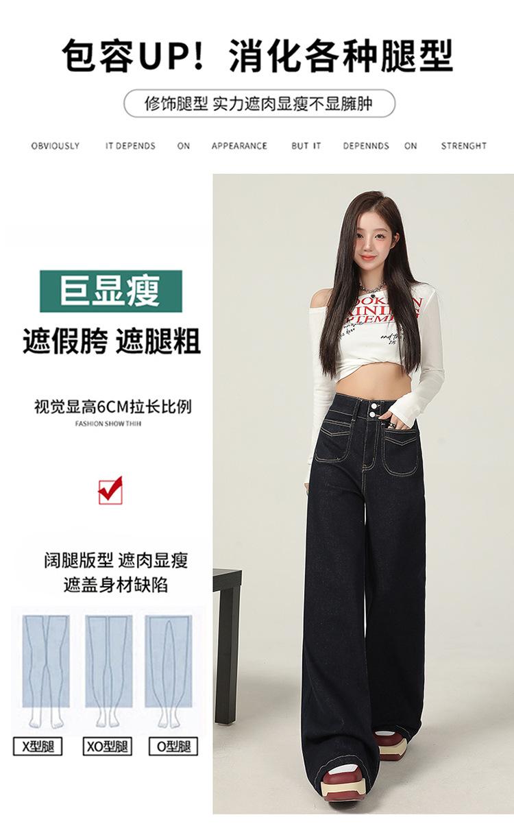 Young Orange# Jeans feminino com design de fivela dupla resistente ao desbotamento, perna larga, solto, emagrecedor, cobrindo a pele, elegante, para todos os gostos