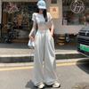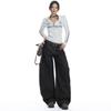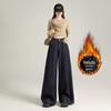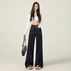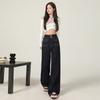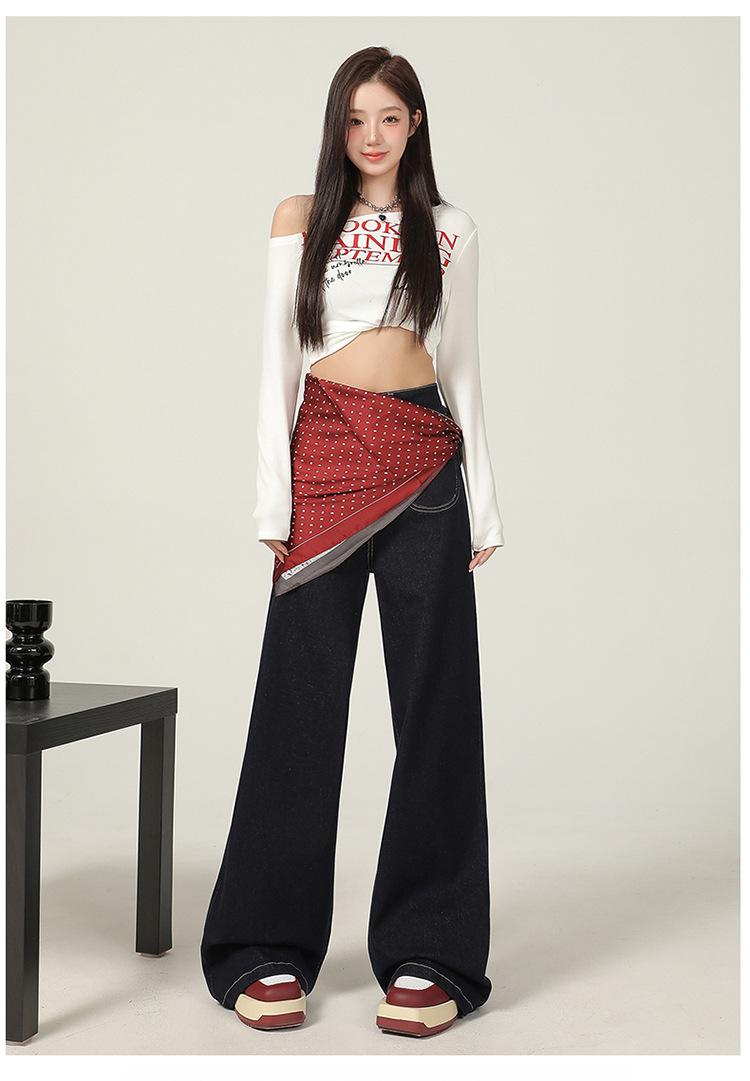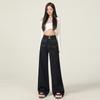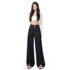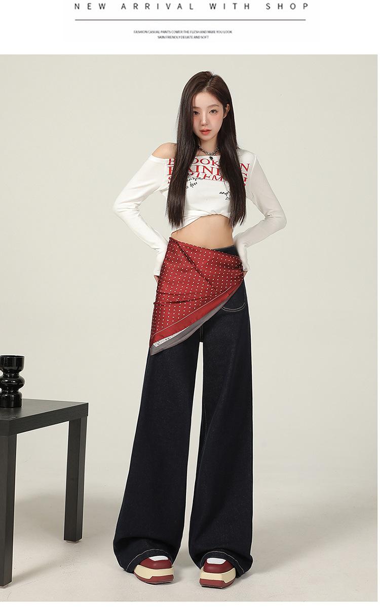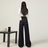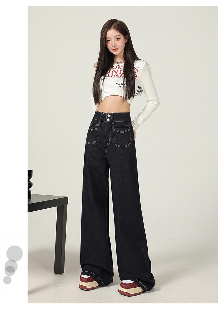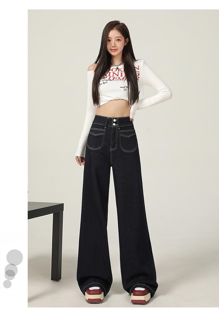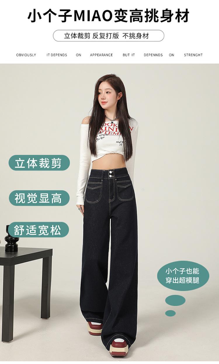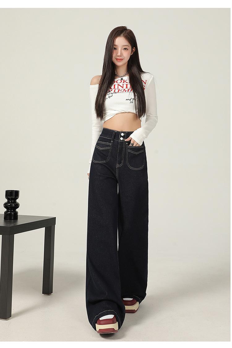 Young Orange# Jeans feminino com design de fivela dupla resistente ao desbotamento, perna larga, solto, emagrecedor, cobrindo a pele, elegante, para todos os gostos