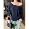 Camiseta de Manga Longa com Um Ombro Só para Mulheres 2025 Novo Outono Sexy Ombro Caído Solto Estilo Desejo Puro Ombro Inclinado Top Estudantil para Mulheres