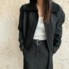 Outono 2025 Novo Design Coreano Jaqueta Curta com Lapela + Saia Midi com Fenda