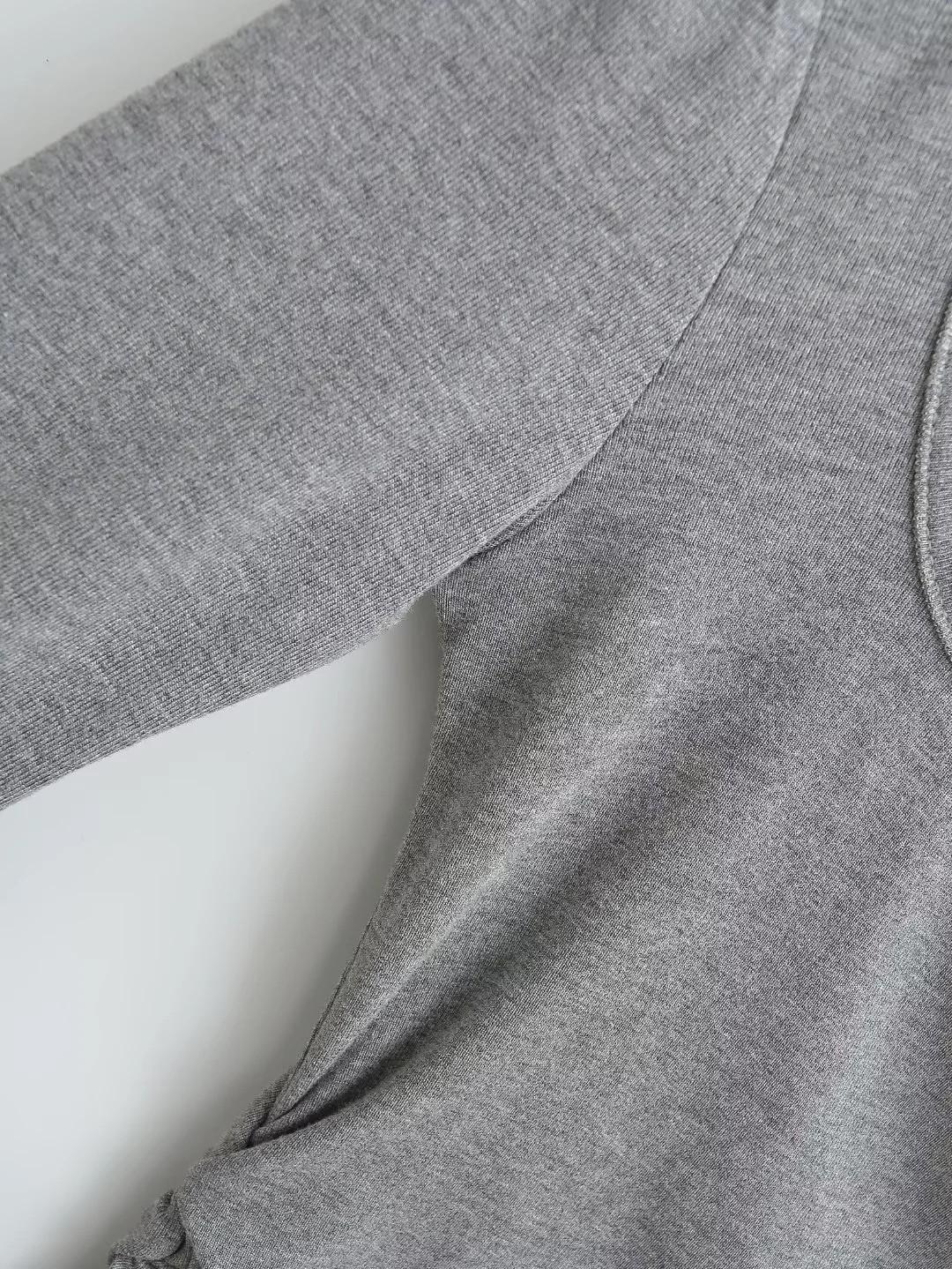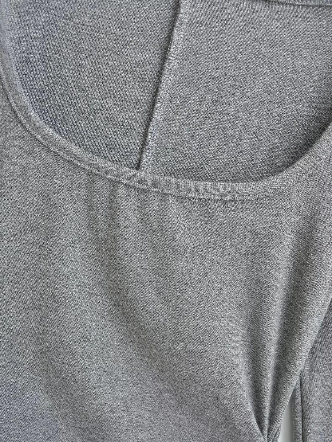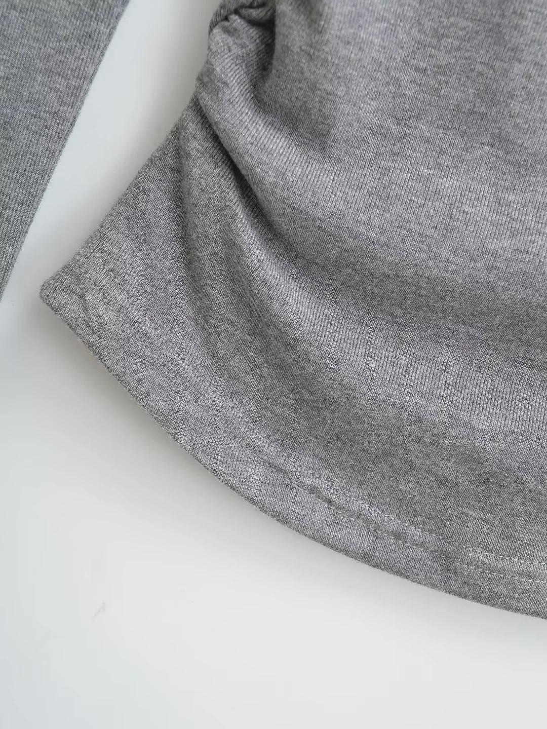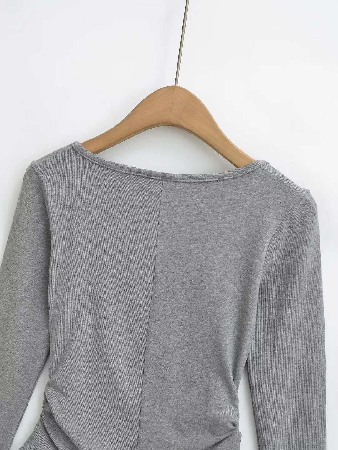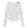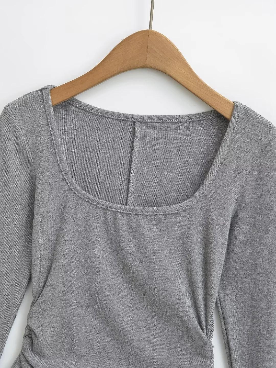 Camiseta de manga comprida com gola quadrada estilo europeu e americano, estilo hot girl, 2024, outono e inverno, nova camisa de cintura alta com bainha plissada e base fina