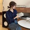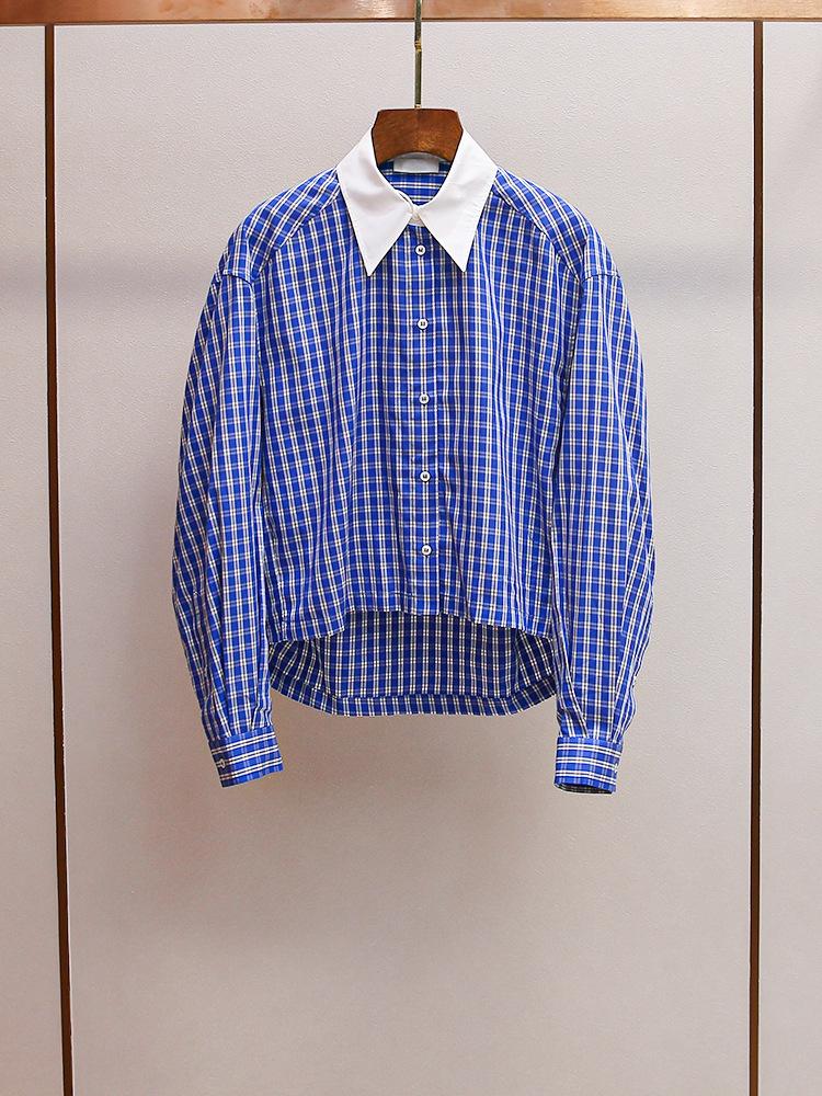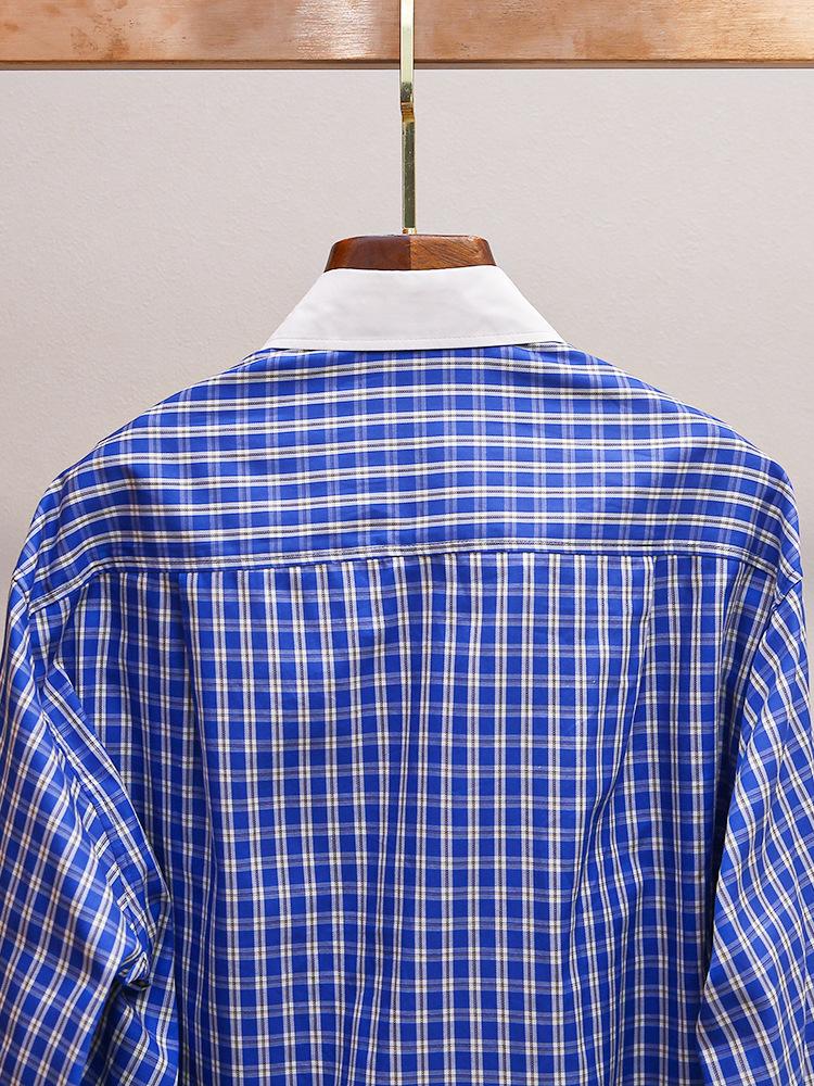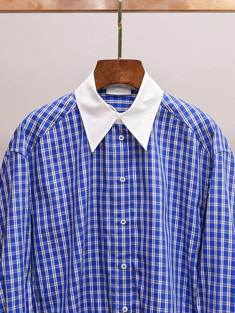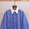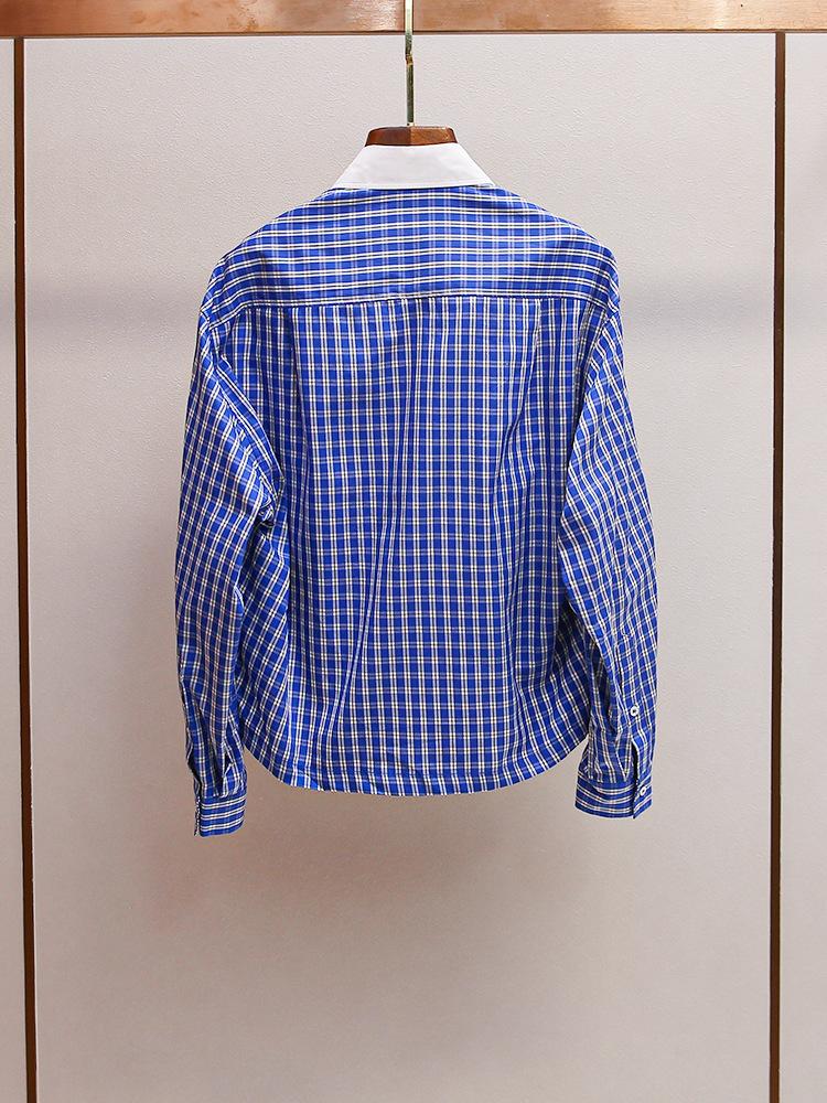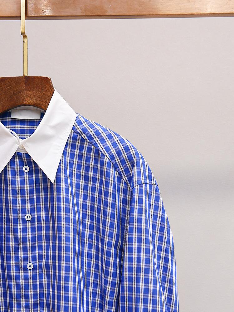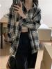 S Novo Outono Feminino Estilo Francês Solto Casual Versátil Costura Contraste Lapela Xadrez Camisa Top