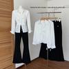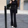 Foto real do outono e inverno de 2024, novo estilo, versátil, visual slim, cintura espinha de peixe, cintura alta, calça casual bootcut para mulheres