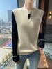 2024 Novo colete feminino elegante sem mangas empilhado cashmere tricotado gola redonda lã espessada colete suéter