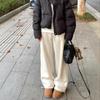 Calças quentes retrô americanas femininas, calças esportivas forradas de lã para outono e inverno, calças largas com cordão, calças casuais para todos os tipos de combinações
