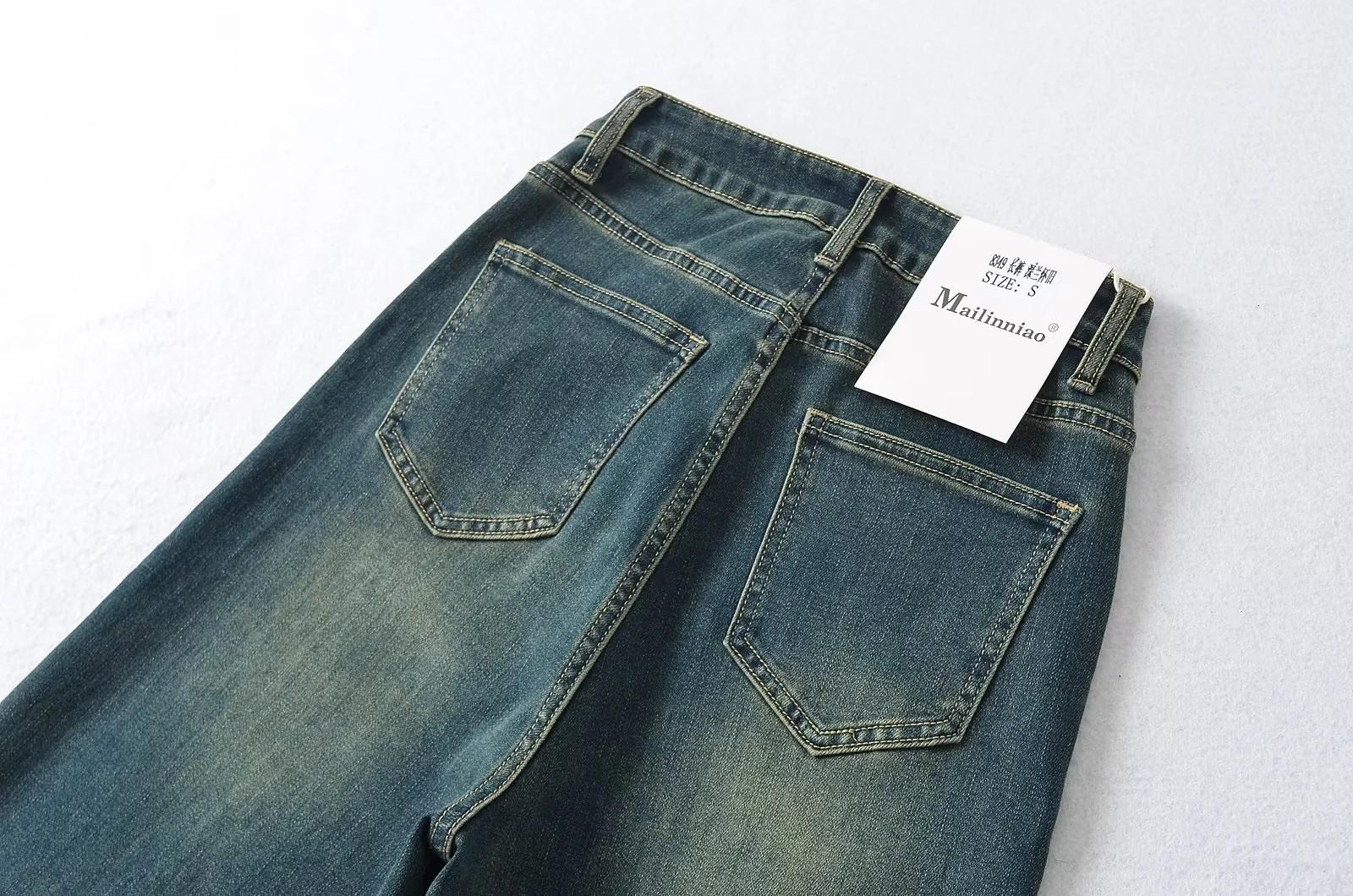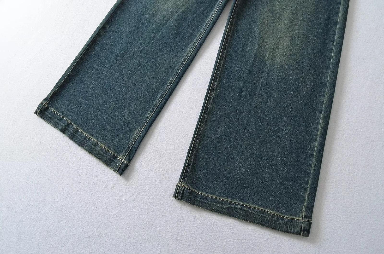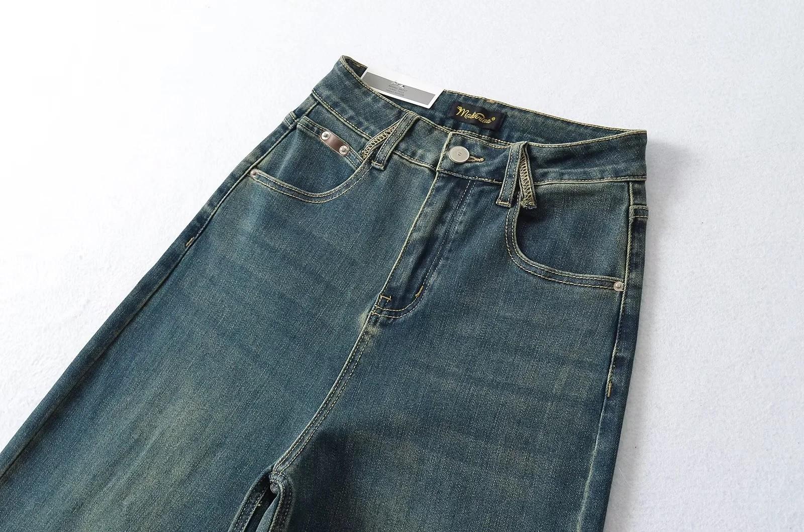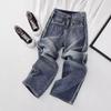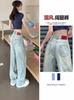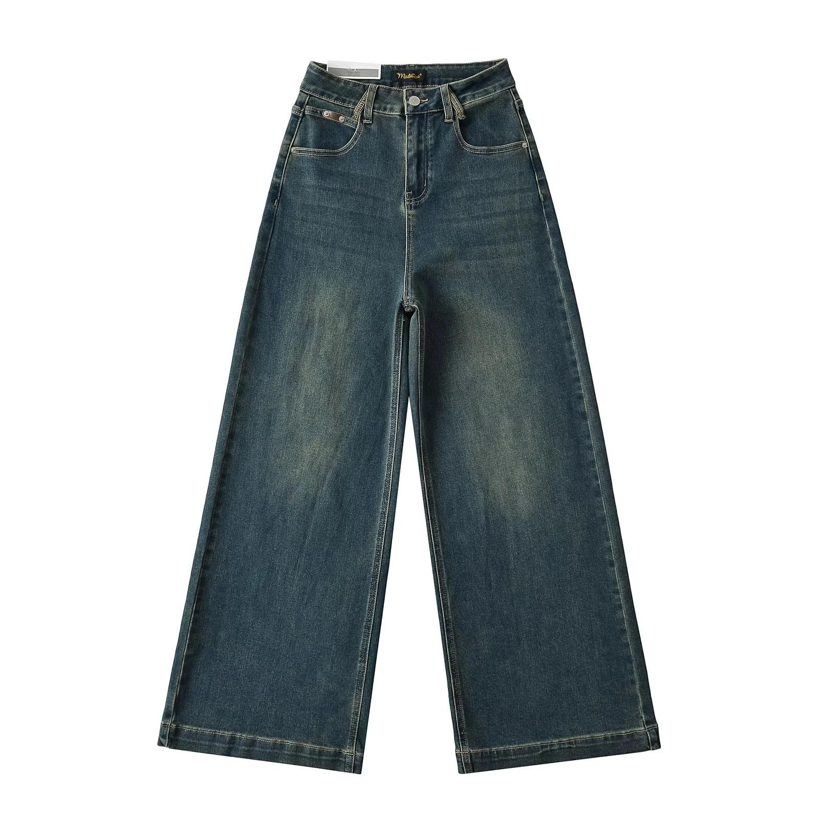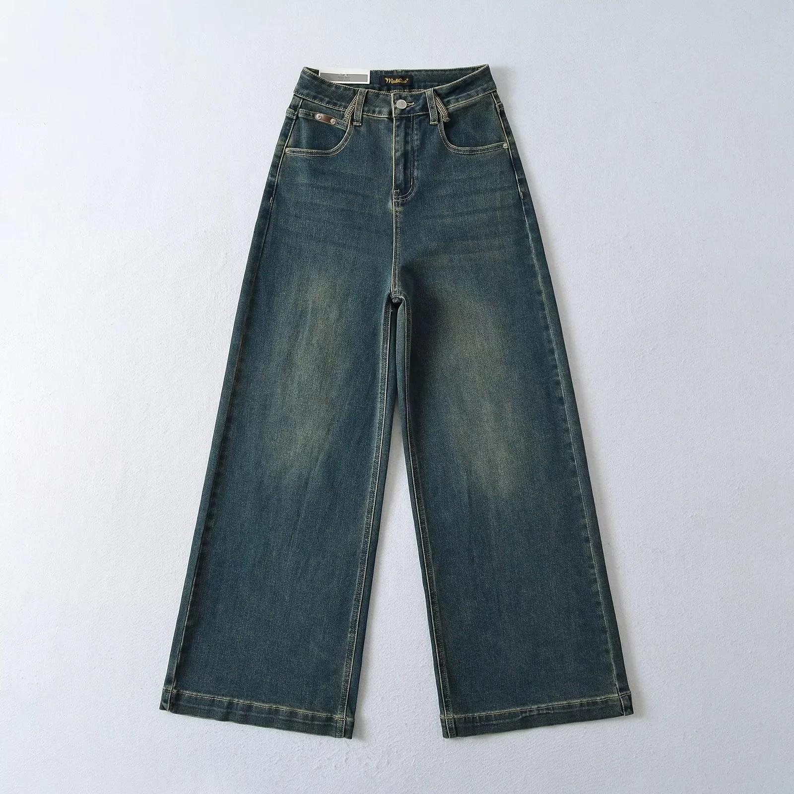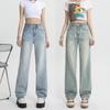 Calça Jeans de Perna Reta Feminina Outono Estreita Calças de Perna Larga Cintura Alta Dipper Alta Perna Fina Longa 2024 Novo