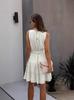 2024 Novo Vestido Feminino de Comércio Exterior Europeu e Americano Elegante Cor Sólida Cintura Orelha de Madeira Decote Redondo Sem Mangas
