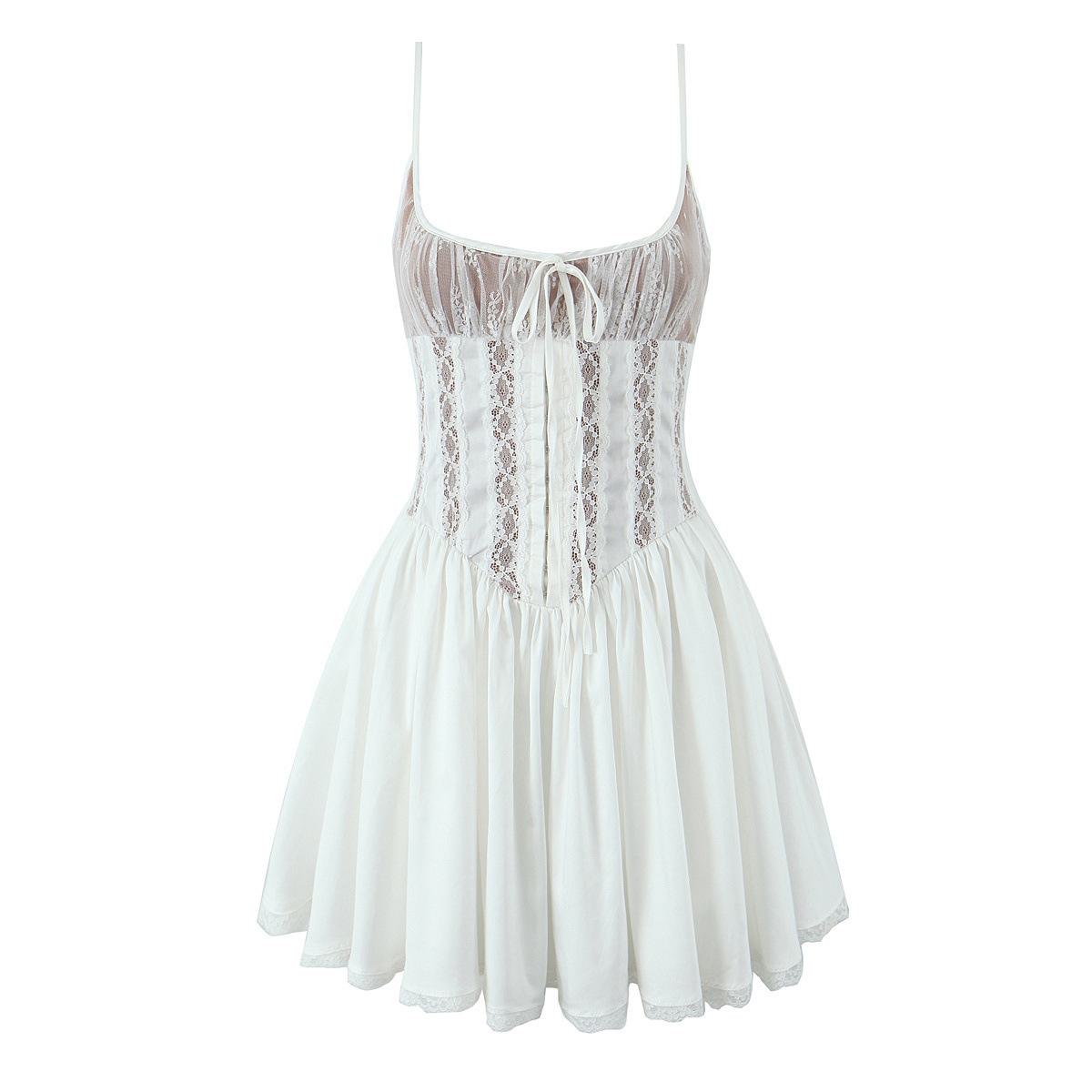 Vestido sem mangas com alça de renda pura e vento da moda inverno 2024, Amazon feminino C27359