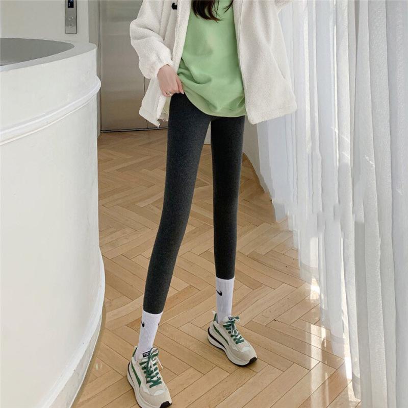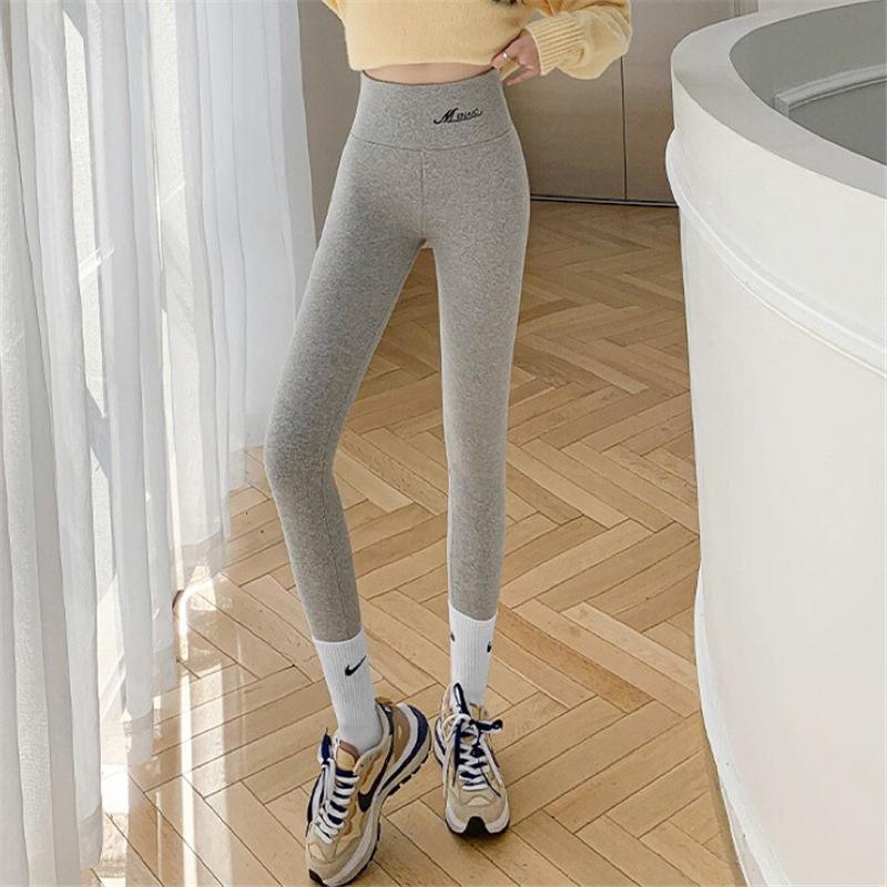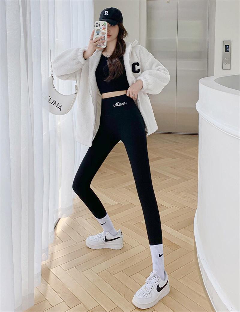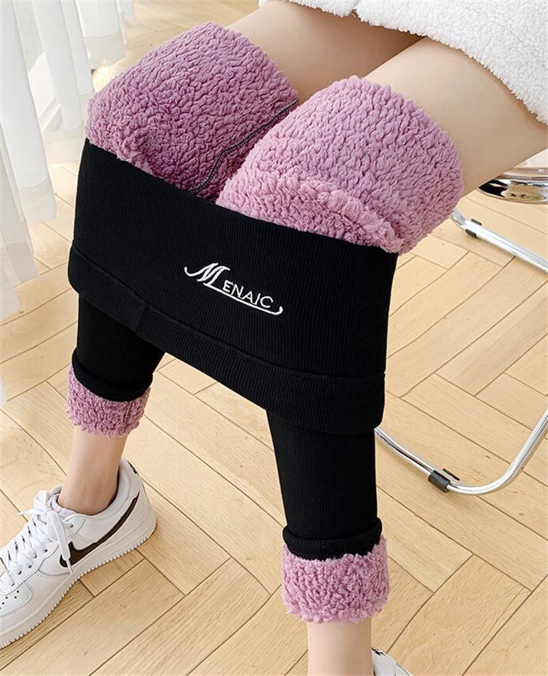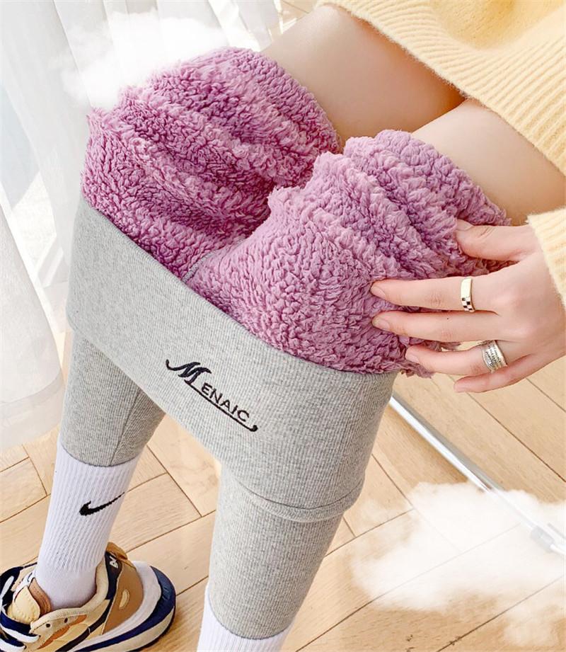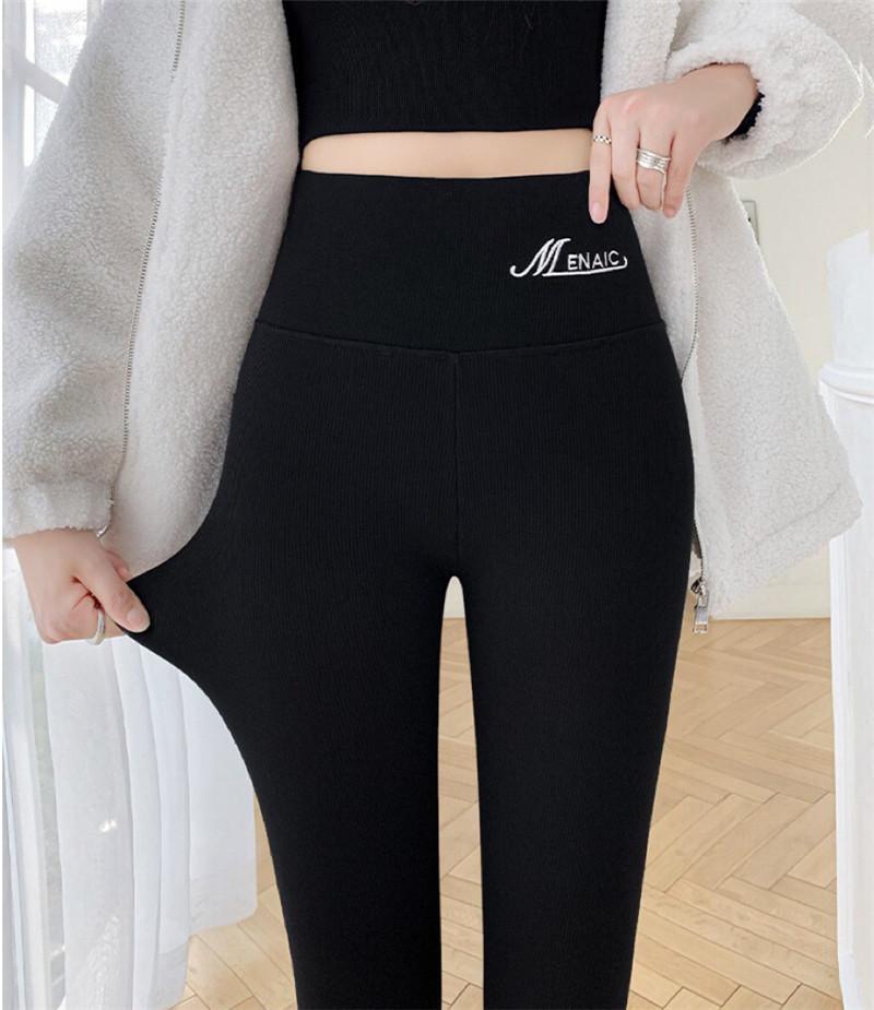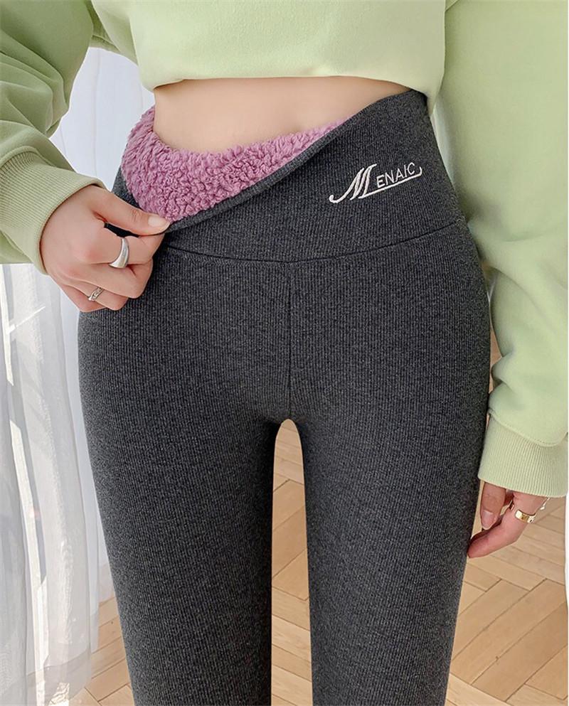 Calças de algodão quentes abdominais de cintura alta forradas com lã espessada para uso externo, linha de emagrecimento, esportivas, femininas, inverno 2024, novo