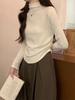 Design-Sense Cardigan Plissado Camiseta Feminina Gola Meia Alta Base Interna Camisa Outono e Inverno Nicho Doce e Picante Top de Manga Comprida