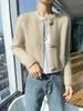 2024 Novo Cardigan de Caxemira com Gola Redonda Feminino Outono e Inverno Chifres Espessados Suéter de Malha com Bolso Jaqueta de Lã