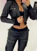 2024 Comércio Exterior Transfronteiriço Roupas Femininas Estilo Europeu e Americano Cor Sólida PU Curto Zíper Bolso Design Slim-fit Jaqueta de Terno de Beisebol