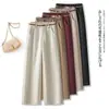 Calças de Lã Largas para Mulheres, Outono e Inverno 2025 Novo Calças Casuais Drapeadas de Cintura Alta, Calças Compridas de Lã Grossa de Perna Reta