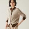 Cardigan feminino de cashmere com zíper duplo e contraste, outono e inverno, nova moda, estilo viajante, gola meia alta, jaqueta de manga comprida, da moda