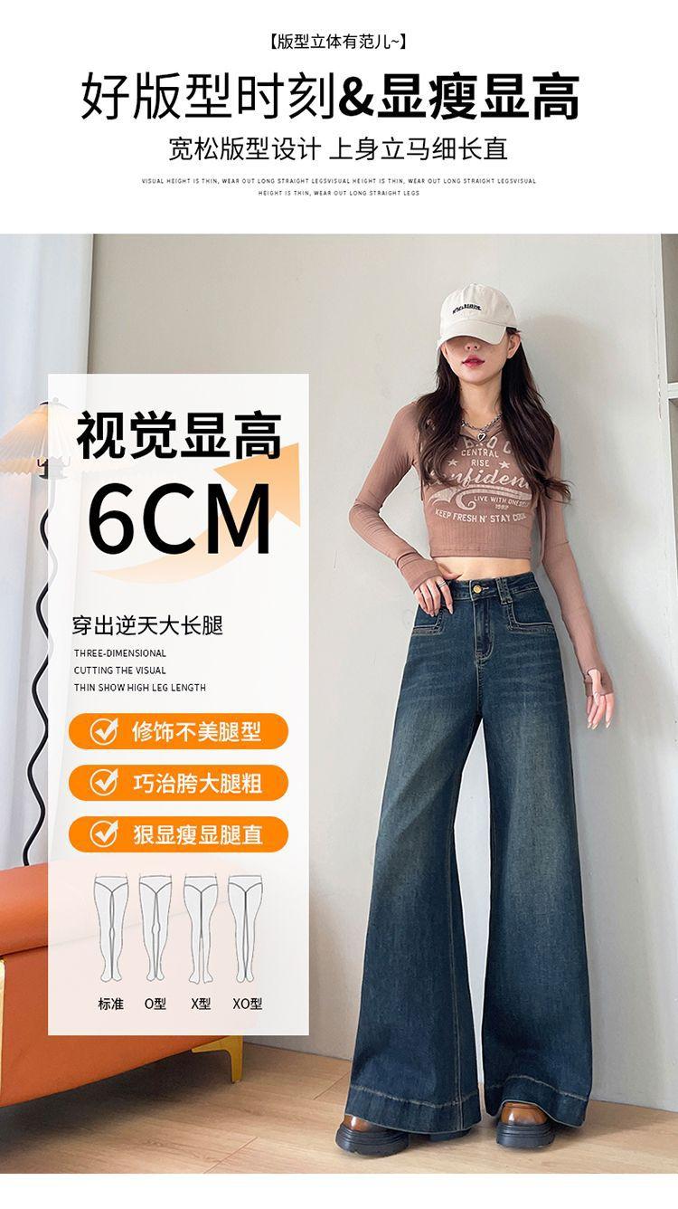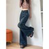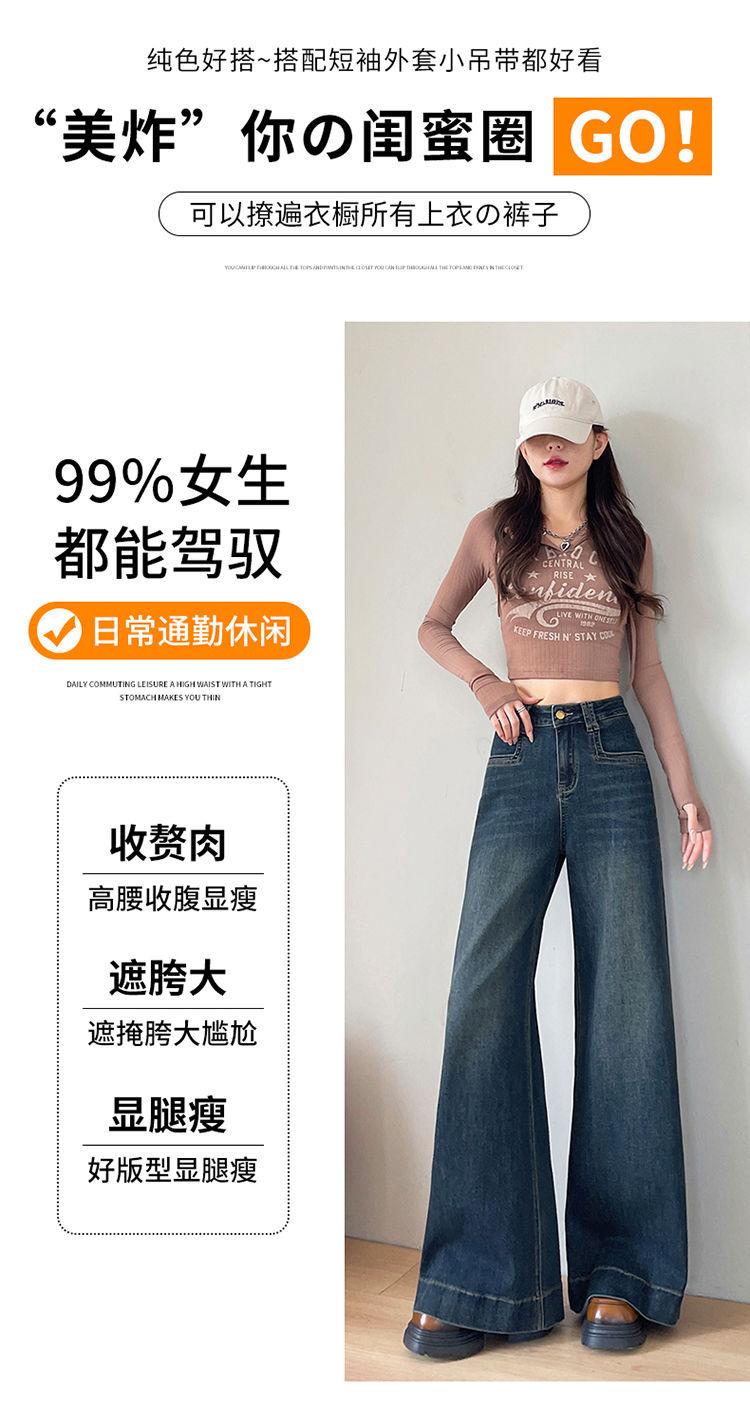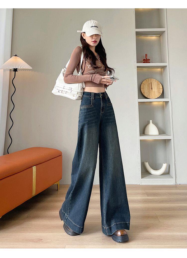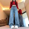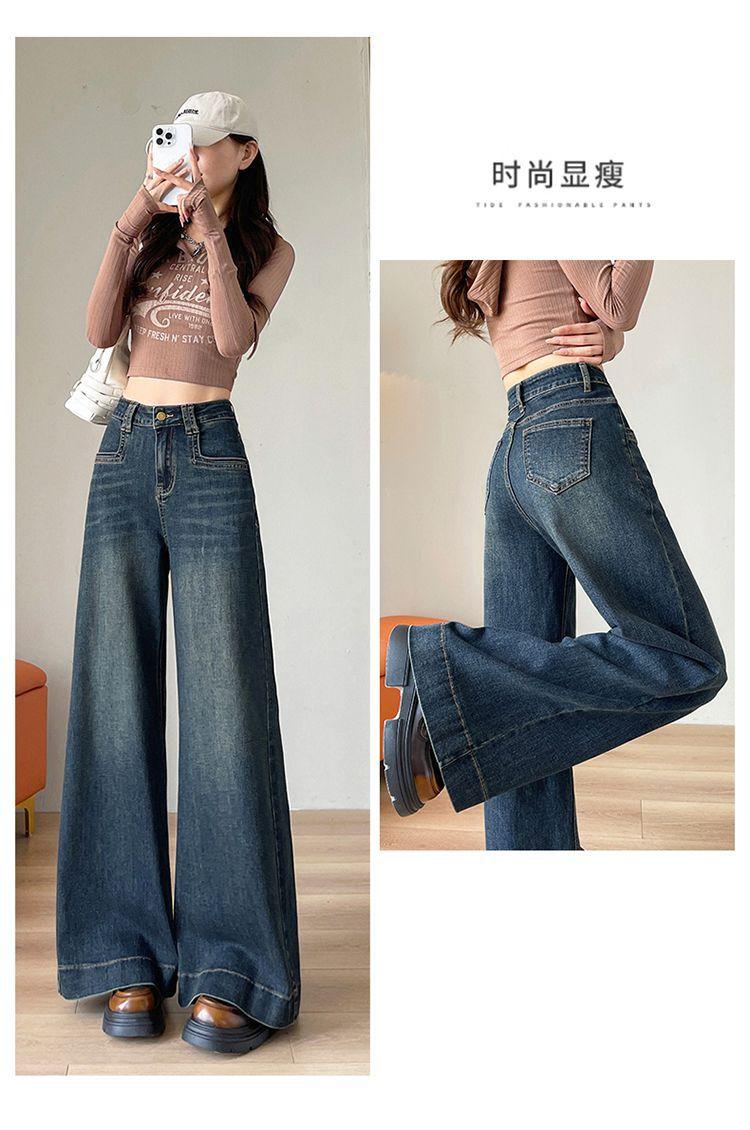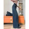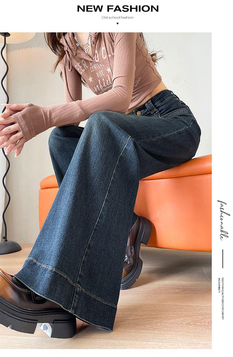 Calças largas azuis nostálgicas femininas 2024 jeans elástico de cintura alta, calças novas e modernas, calças femininas primavera e outono