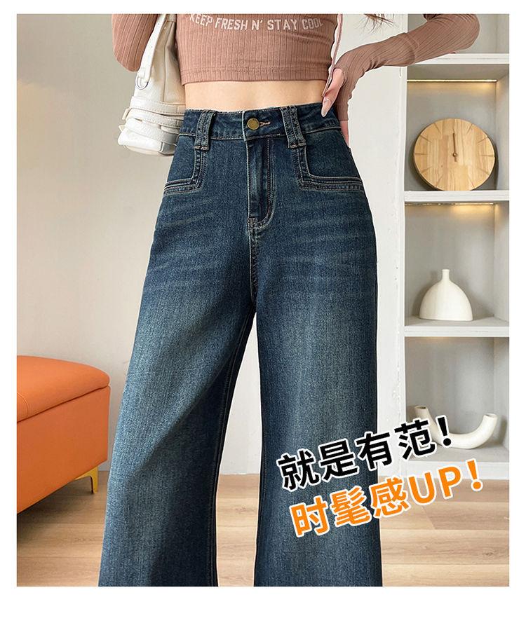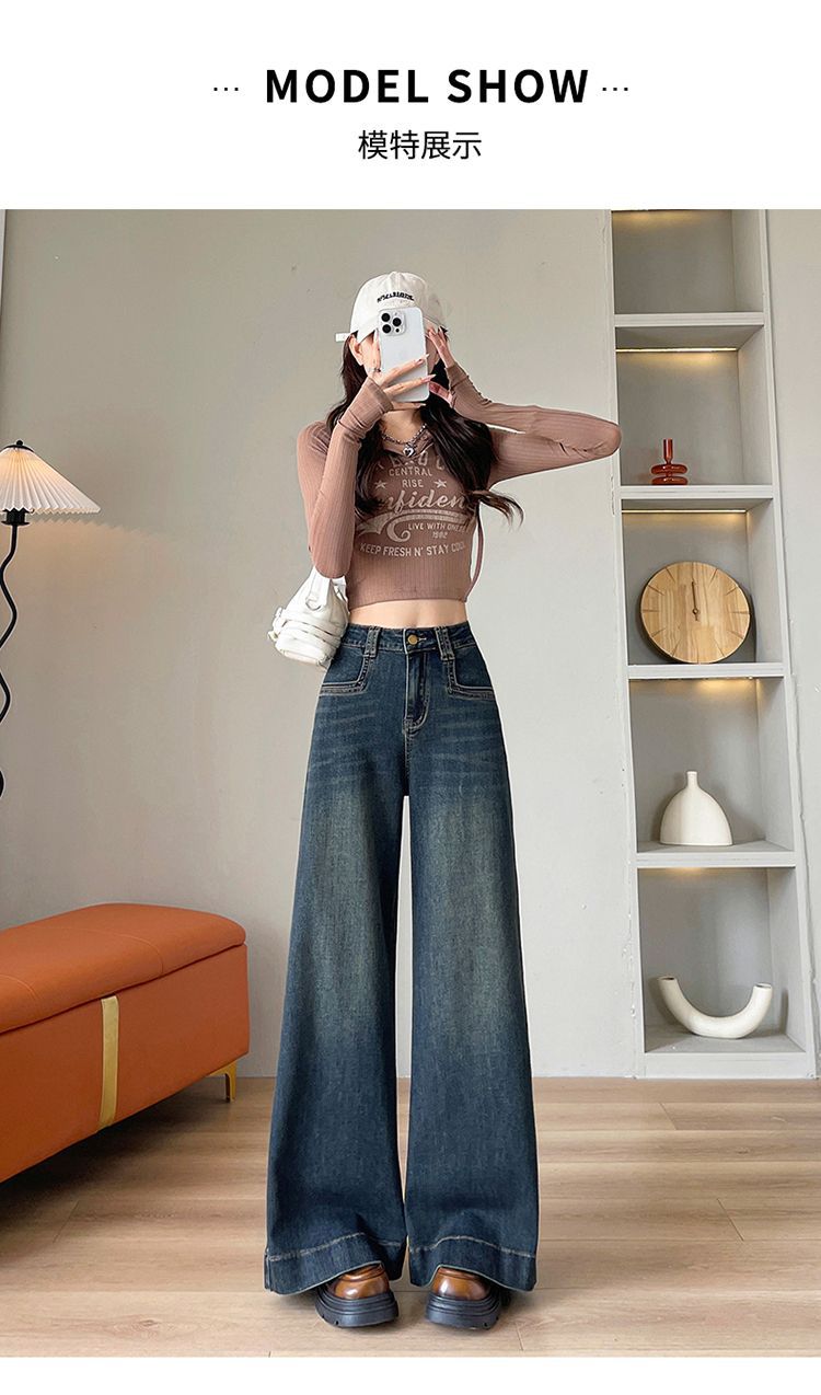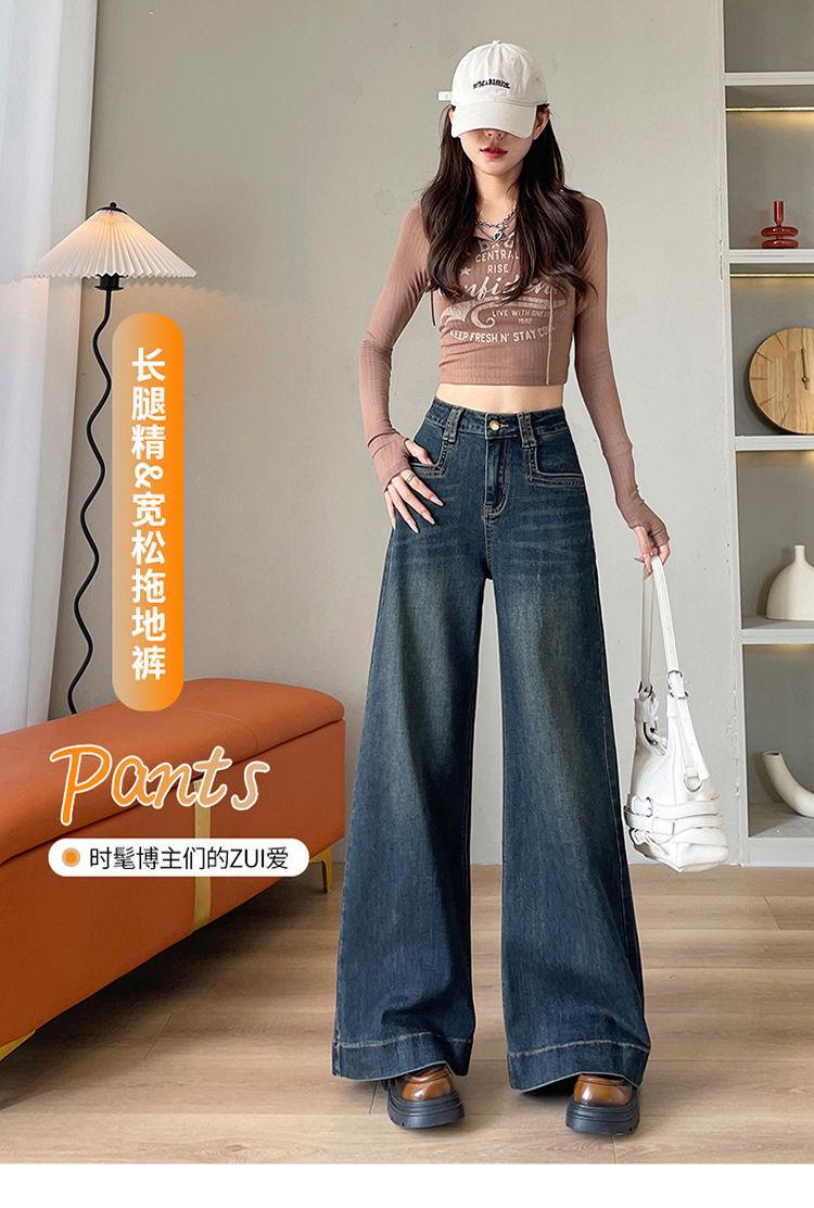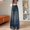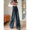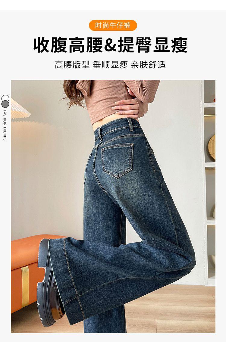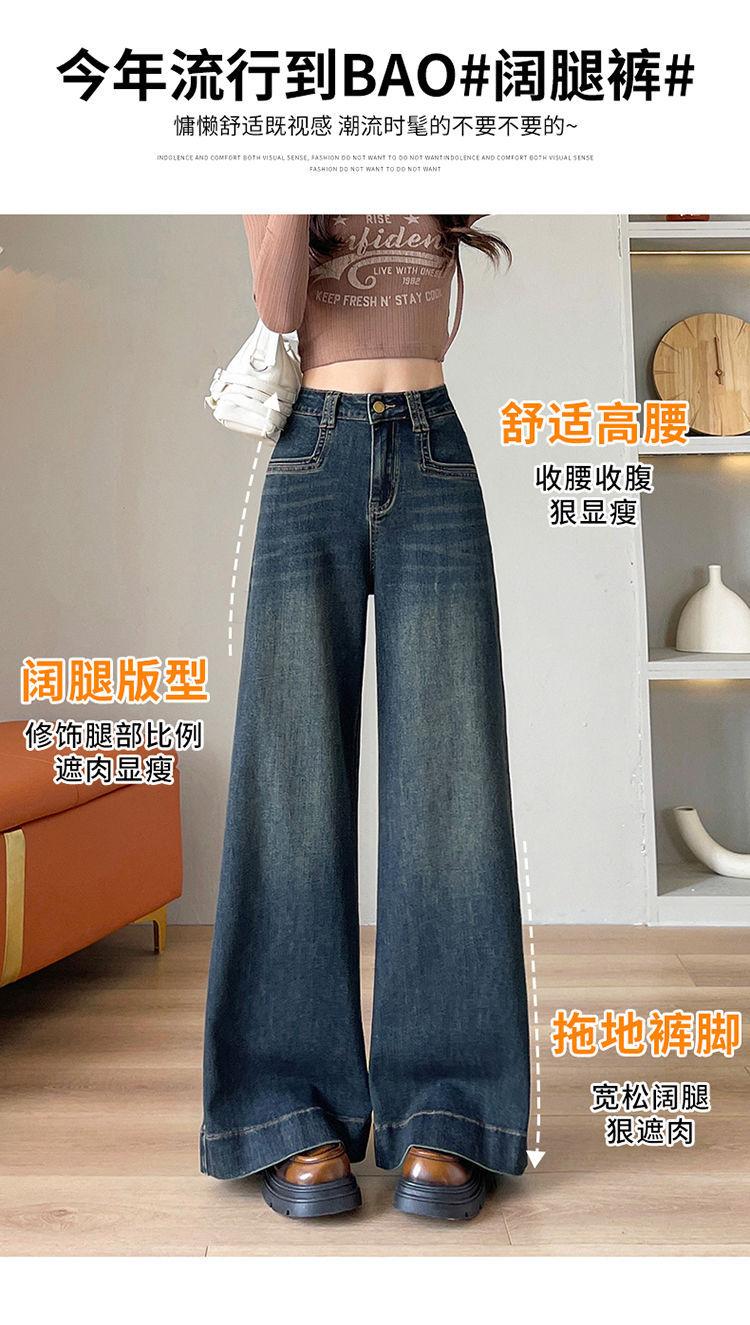 Calças largas azuis nostálgicas femininas 2024 jeans elástico de cintura alta, calças novas e modernas, calças femininas primavera e outono