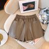 Shorts marrons de couro PU femininos outono e inverno roupa exterior 2024 novo cintura elástica modelador solto perna larga A casual calças bota