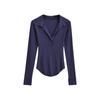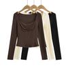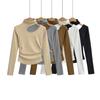 8182-24 Outono Nova American Pure Desire forrado de lã Crewneck Backing Shirt Plissado Slim Curved Hem T-shirt