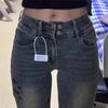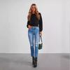 Calça Jeans Skinny com forro de lã feminina, nova calça jeans de cintura alta com três botões, calça lápis