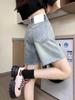 Azul claro Tencel Denim Shorts Feminino 2024 Verão Nova Cintura Alta Solto Slimming Casual Calças Retas