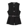 Roupa Feminina Transfronteiriça Estilo Europeu e Americano Outono e Inverno Nova Elegante Moda Cinto Simples Combina com Tudo Sem Mangas Gola Redonda Colete Colete