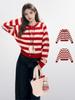 Cardigan de malha listrado vermelho estilo coreano feminino outono e inverno curto preguiçoso início do outono suéter jaqueta 2024 novo estilo