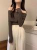 Camisa de malha de outono de 2024, nova camisa feminina com design Sense Niche, ombro de fora, camisa básica, popular na Internet, manga comprida, top moderno