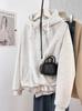 Casaco de moletom com capuz grosso forrado de lã cinza branco feminino outono e inverno design senso nicho estilo preguiçoso moletom solto com capuz