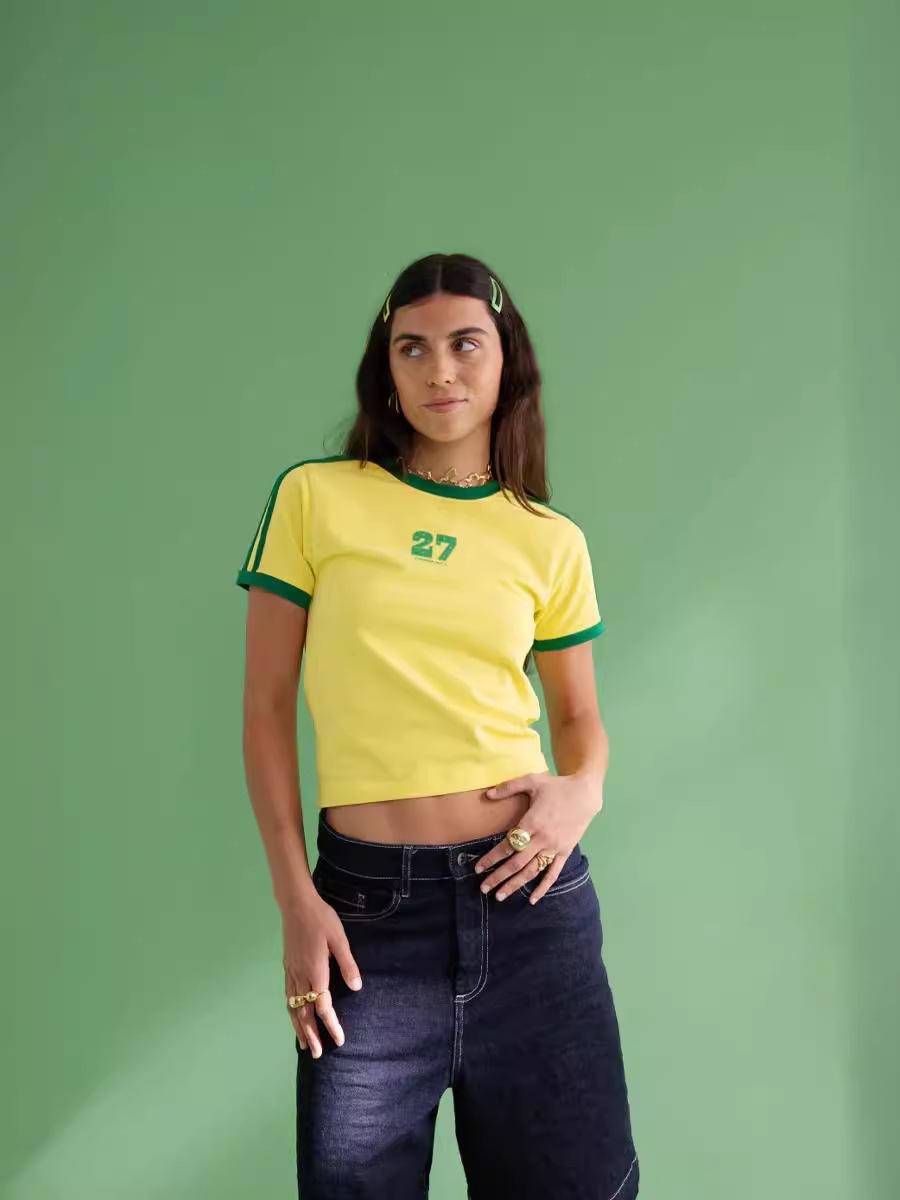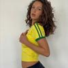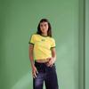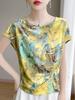 Produtos Novos de Primavera Europeus e Americanos 2025 Camiseta Feminina de Manga Curta Gola Redonda Casual Estampa Digital Padrão Estilo Simples