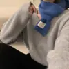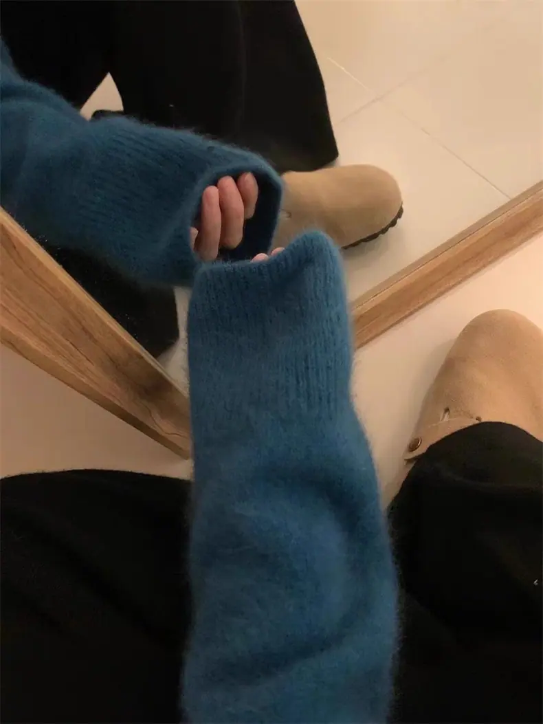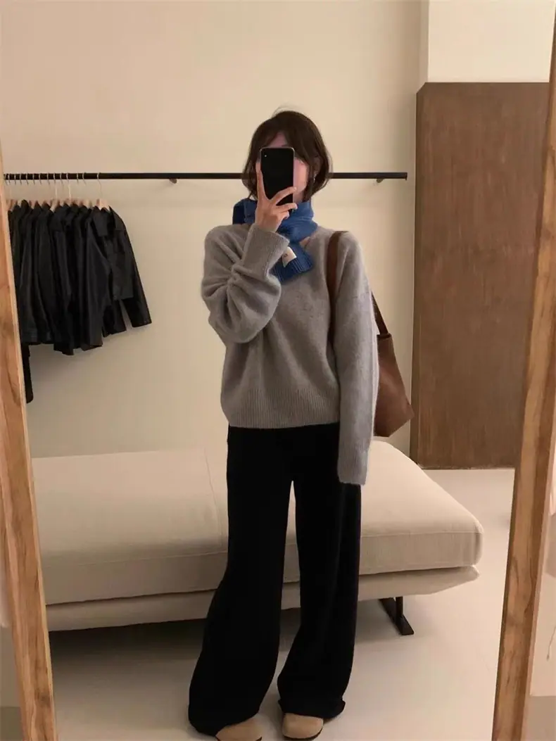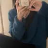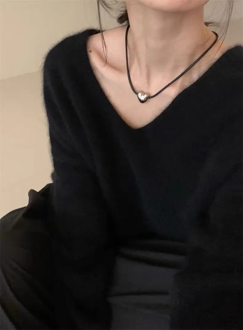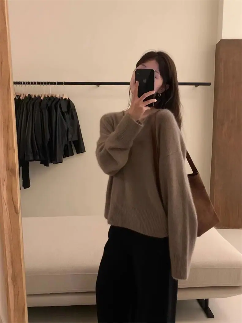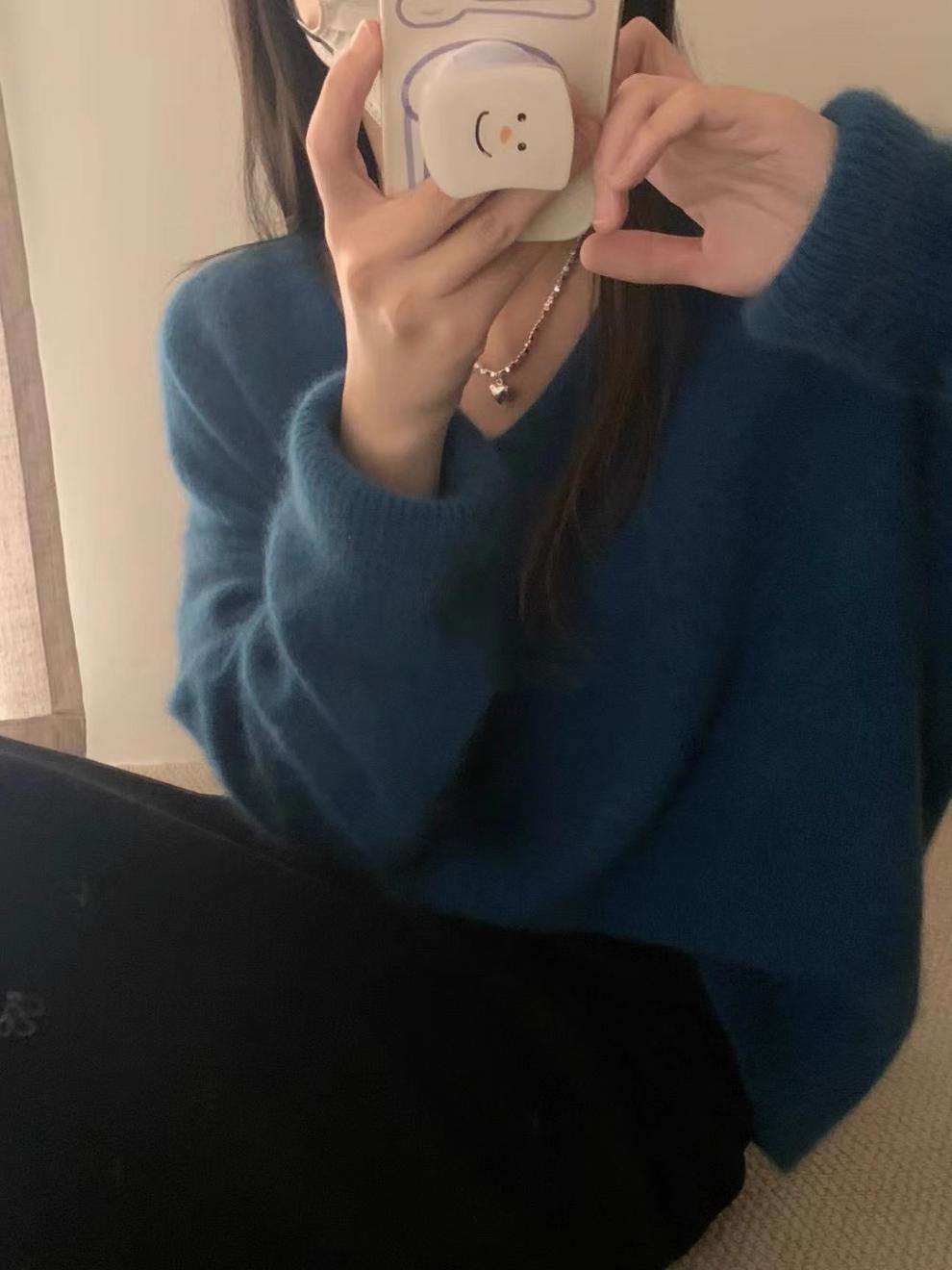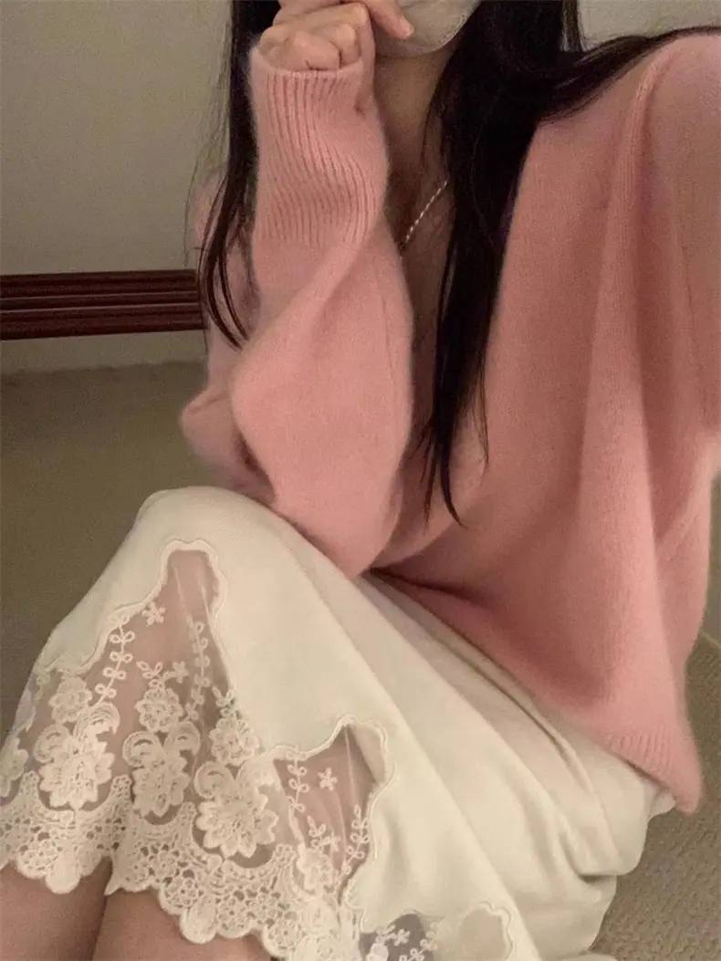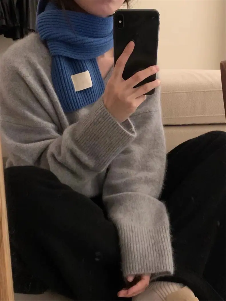 Novo suéter feminino de cor sólida, macio, encerado, estilo preguiçoso, solto, emagrecedor, gola em V, base, suéter para outono e inverno