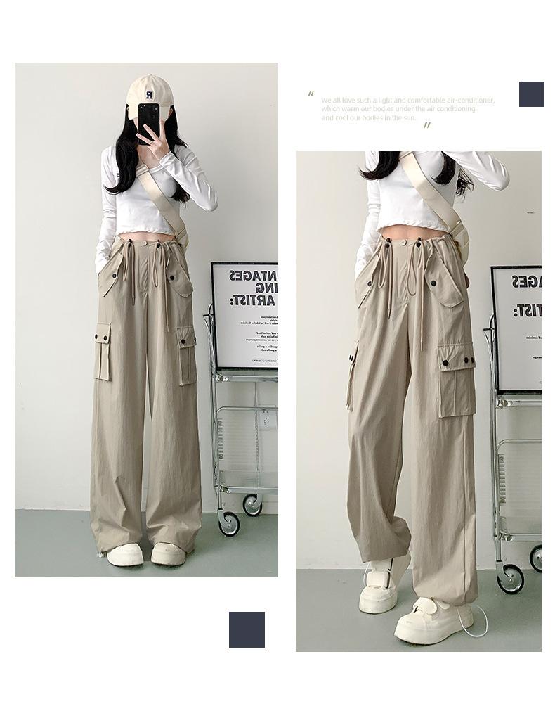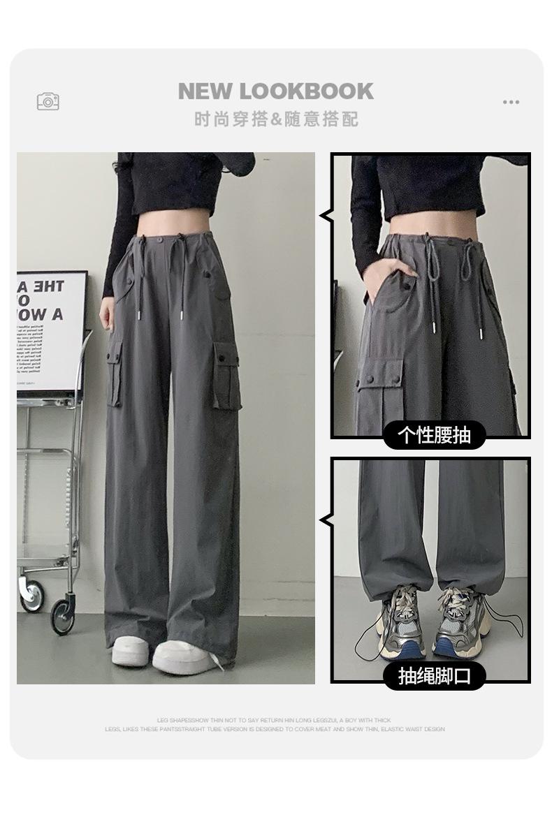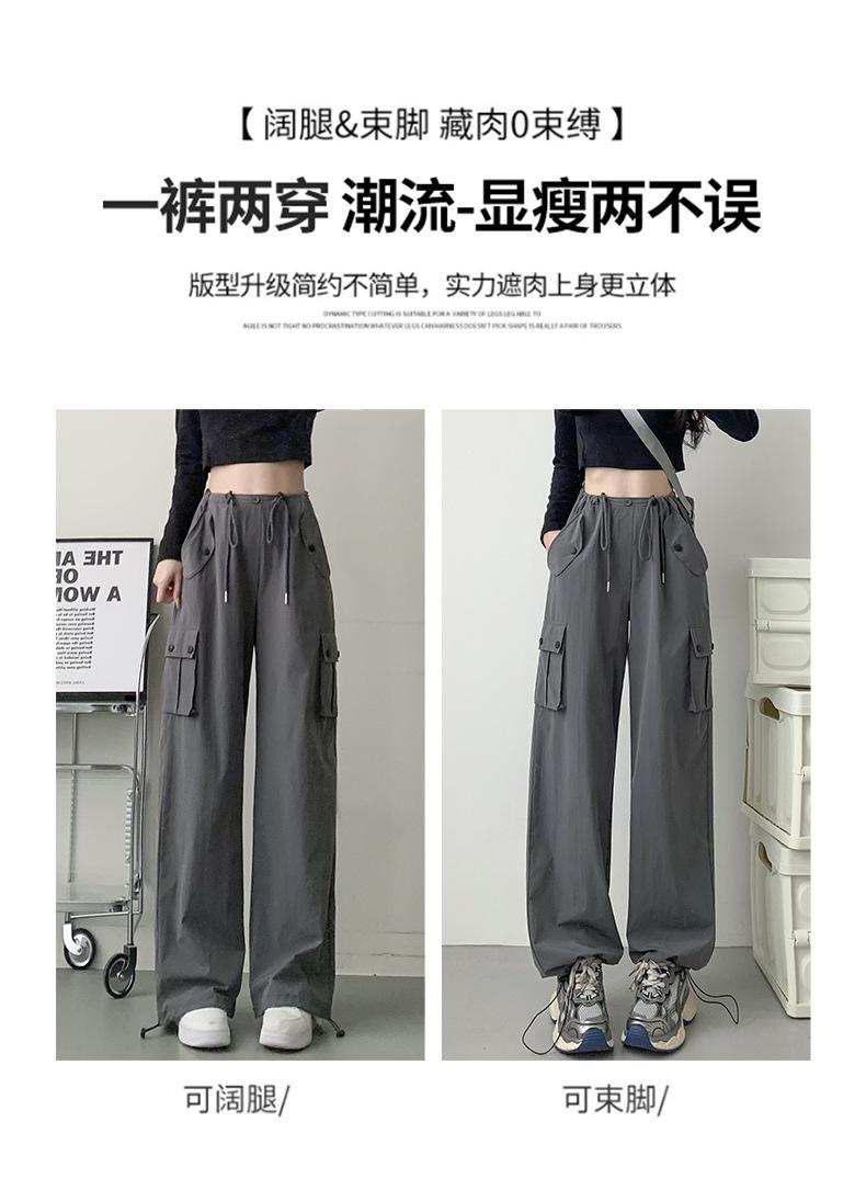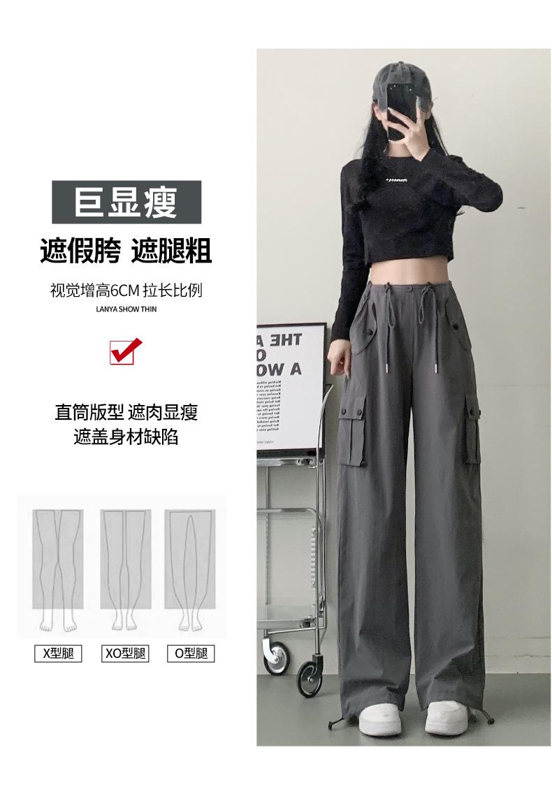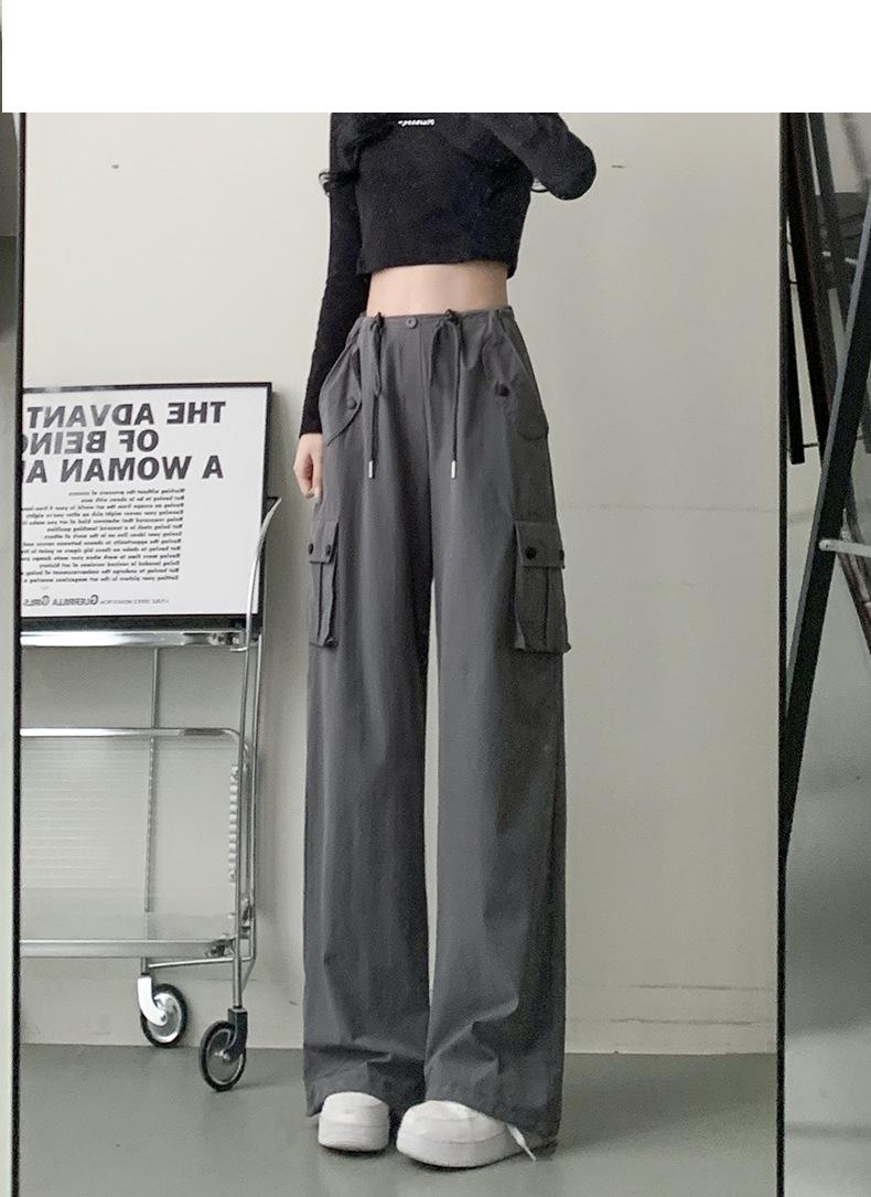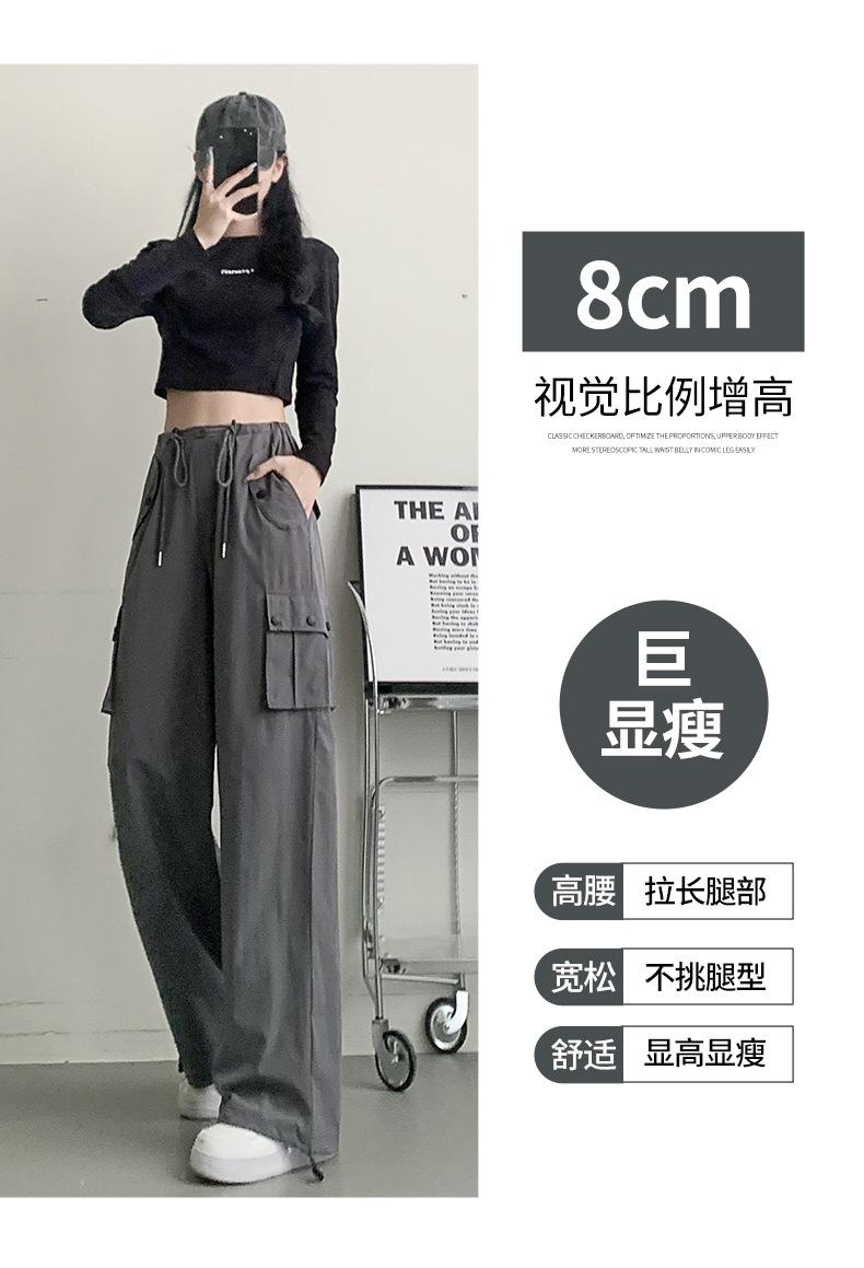 Calças cargo cinza femininas verão fino 2024 novas cintura alta perna larga reta casual solta americana retro calças esportivas