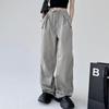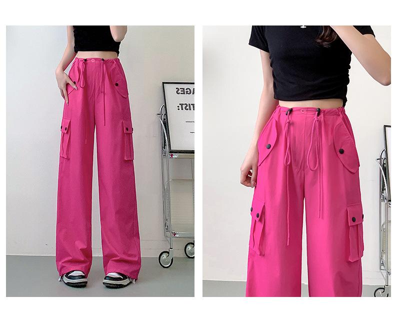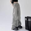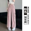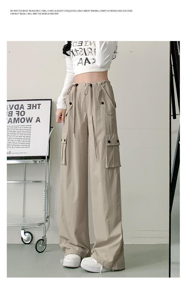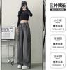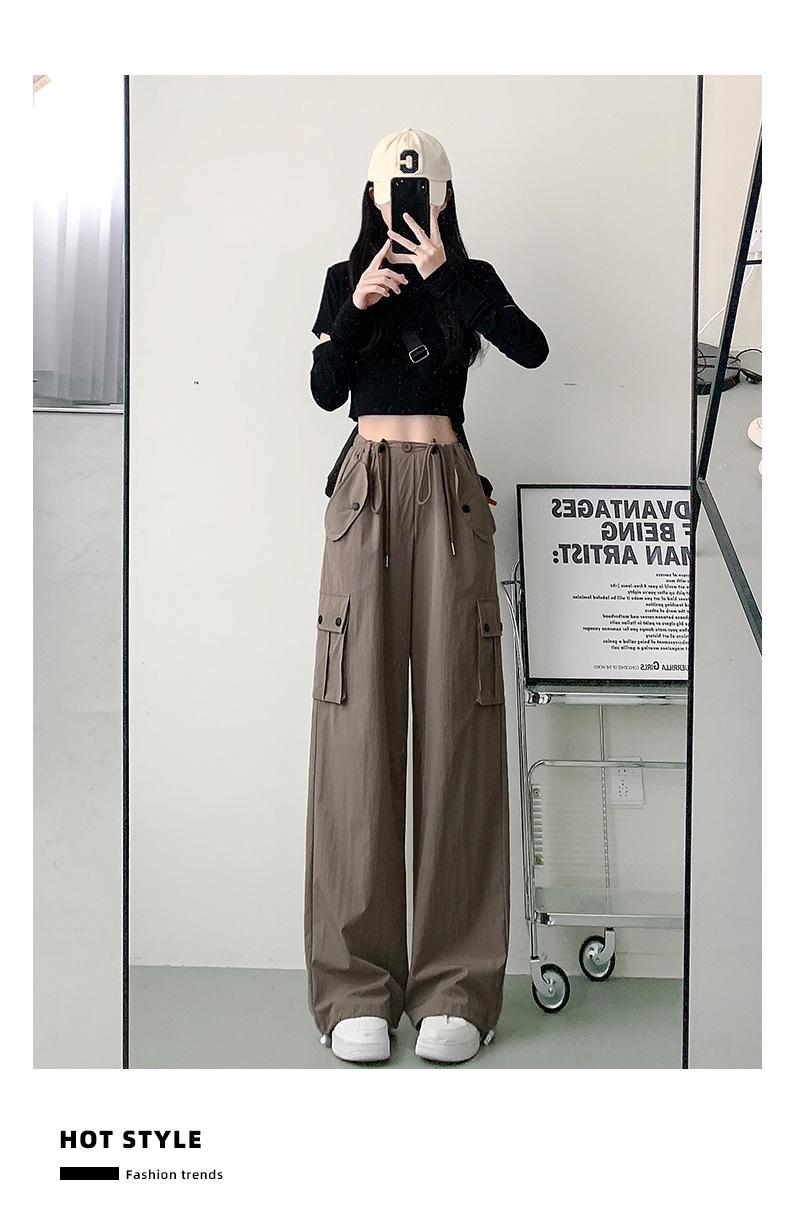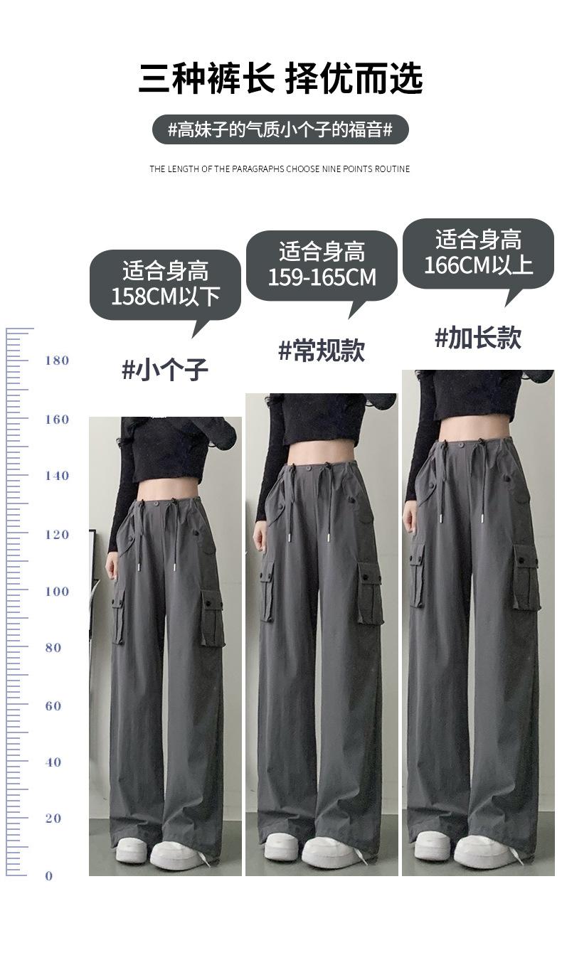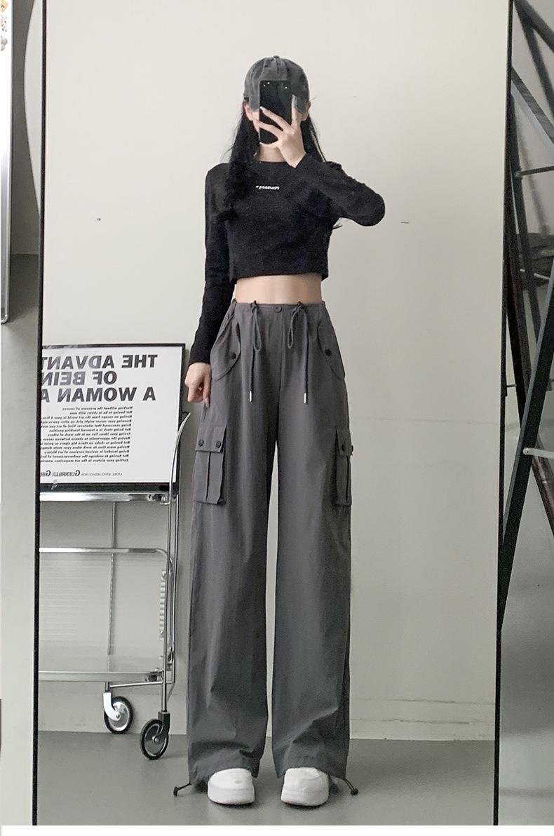 Calças cargo cinza femininas verão fino 2024 novas cintura alta perna larga reta casual solta americana retro calças esportivas