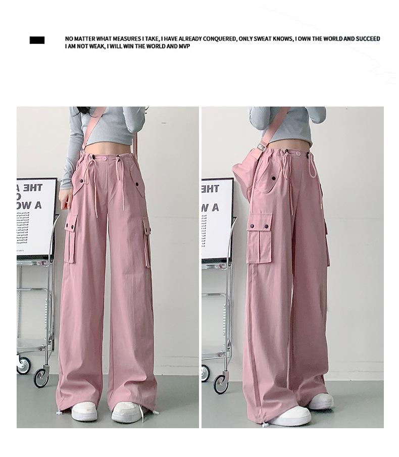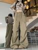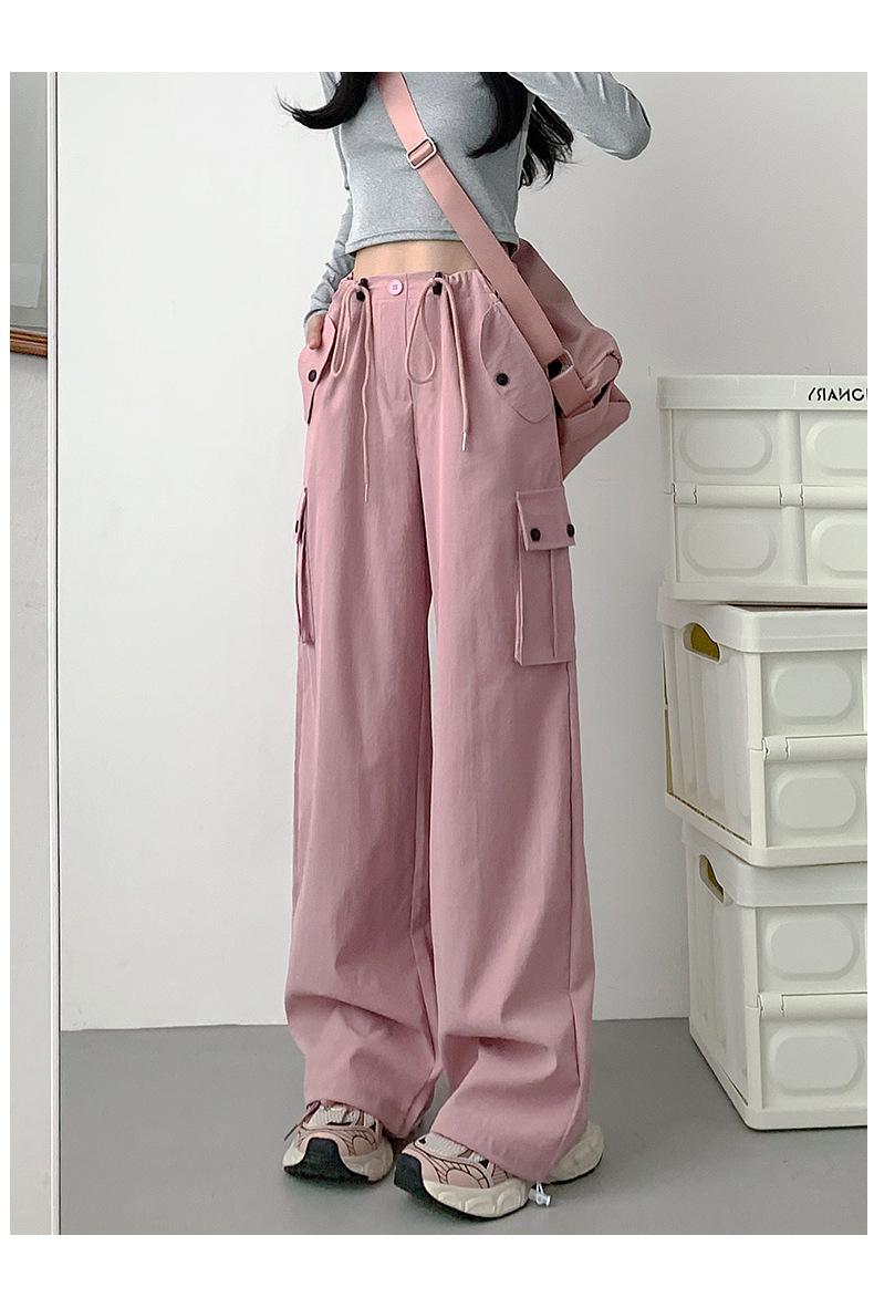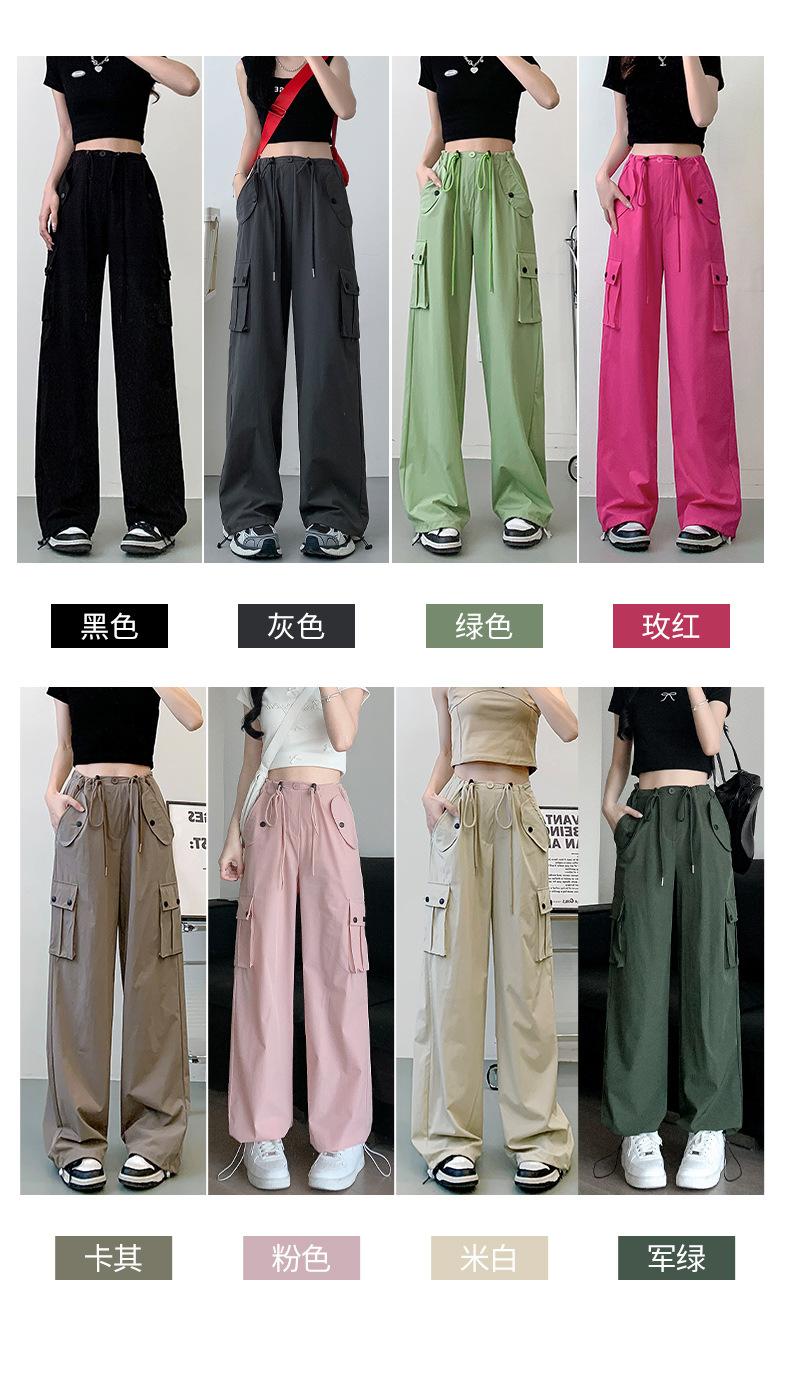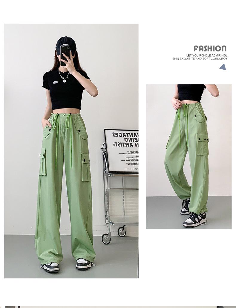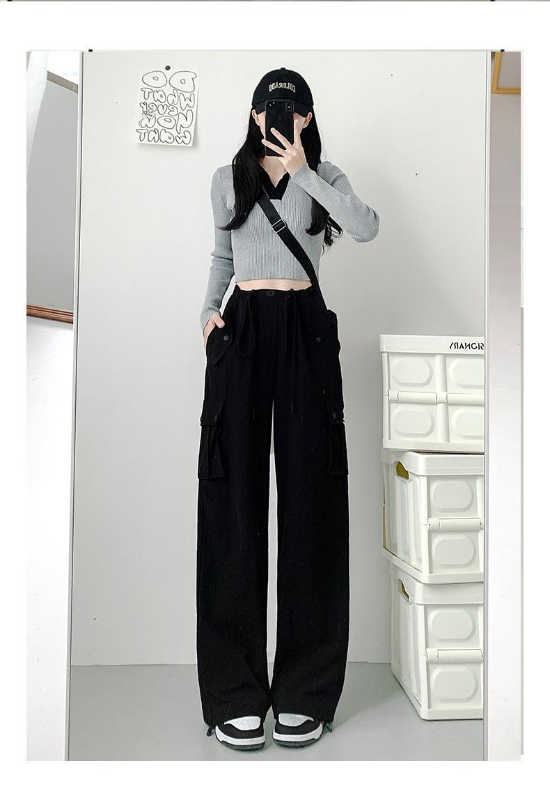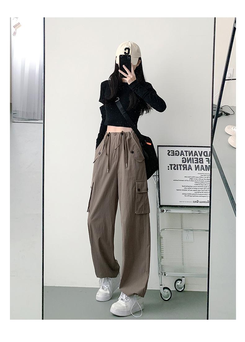 Calças cargo cinza femininas verão fino 2024 novas cintura alta perna larga reta casual solta americana retro calças esportivas