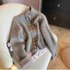 Casaco suéter cinza com zíper trespassado de alta qualidade 2024 novo outono e inverno retrô preguiçoso solto versátil cardigan de malha