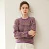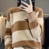 Outono e inverno novo suéter retrô de cashmere com gola redonda, manga comprida, contraste de cores, listrado, macio, base encerada, suéter