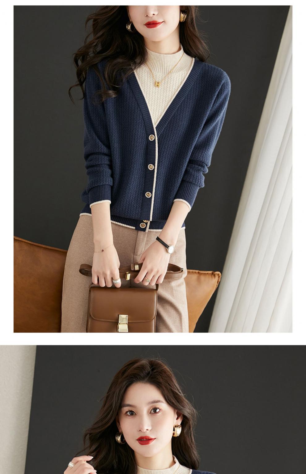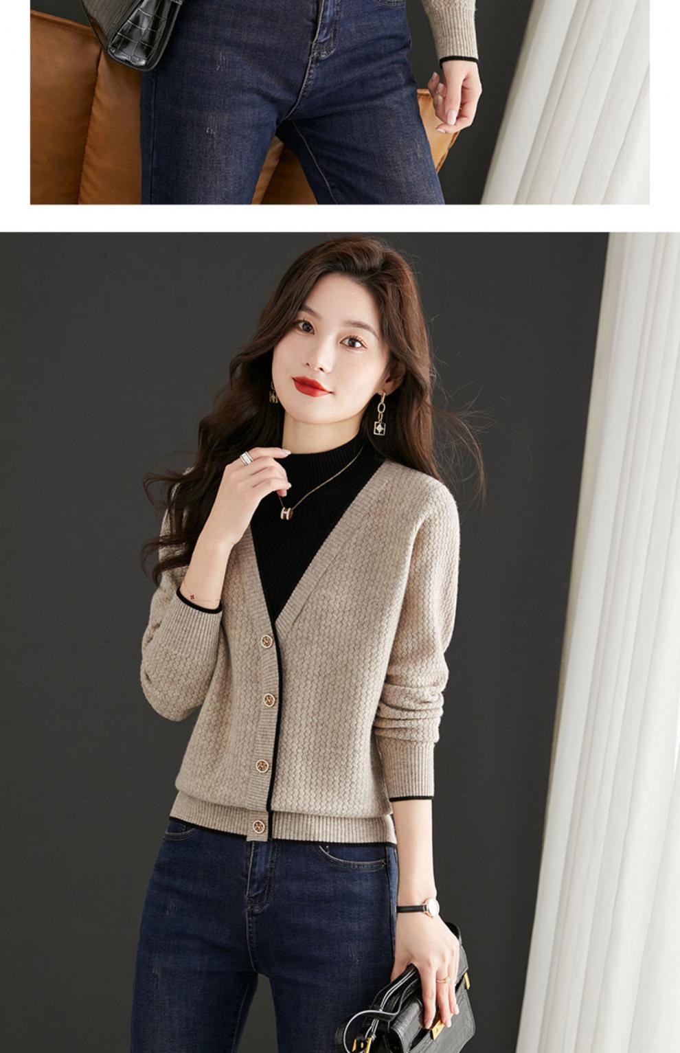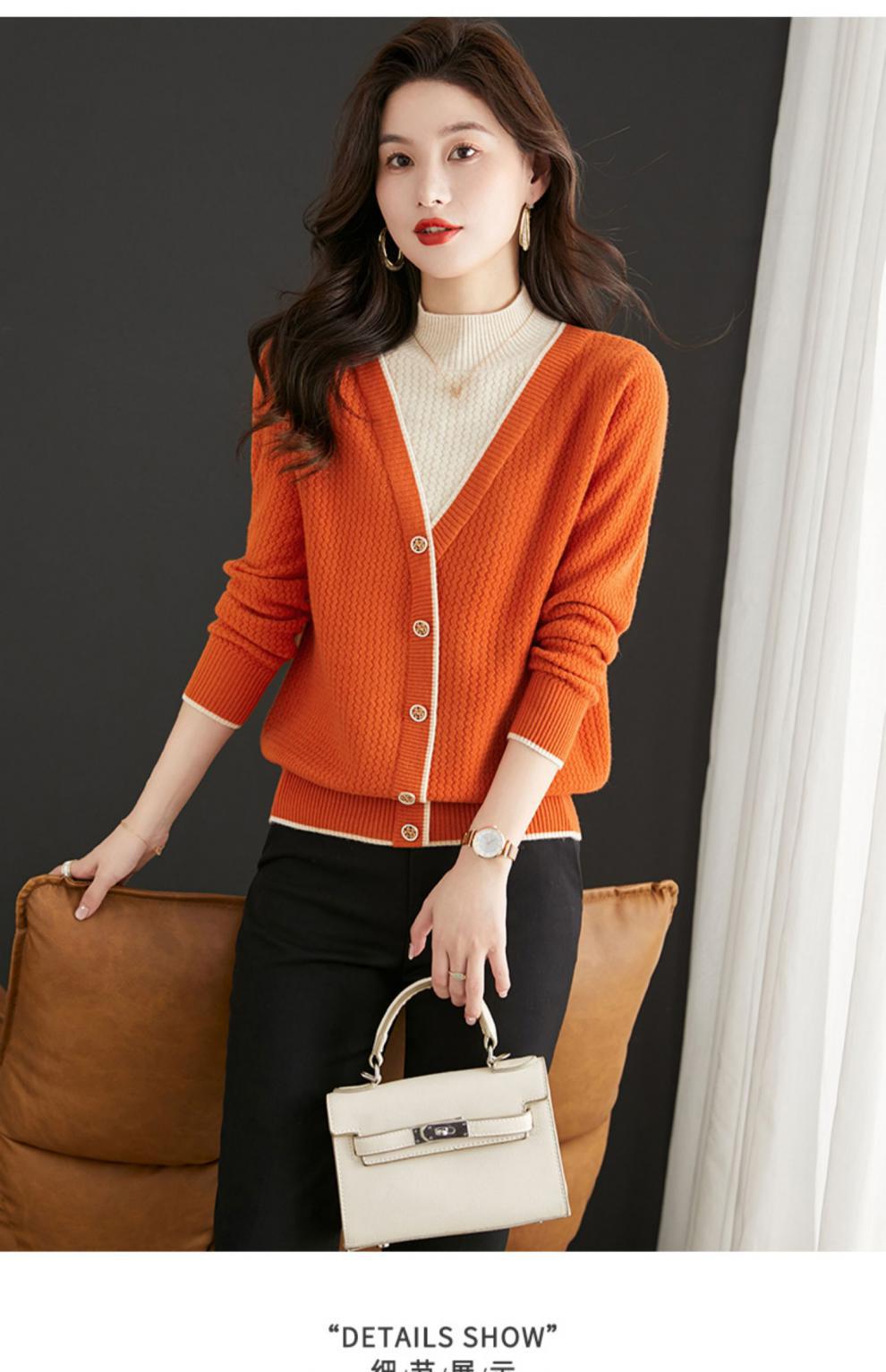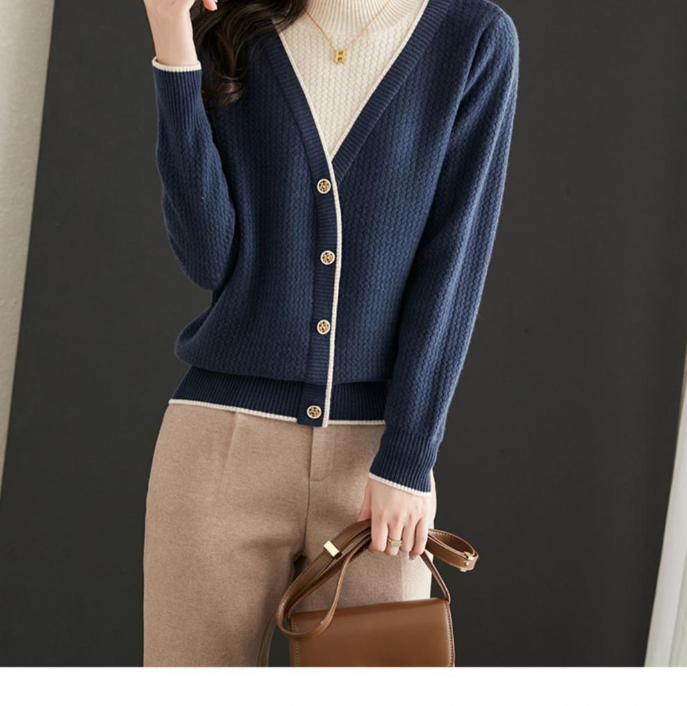 Meia gola alta suéter feminino atacado falso duas peças top interno 2024 nova primavera e outono manga comprida malha camisa de fundo maré