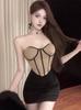 Vestido sexy decotado sem costas com bojo e alças finas para boate Spice Girl