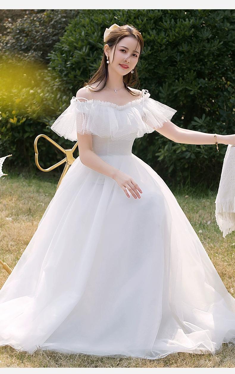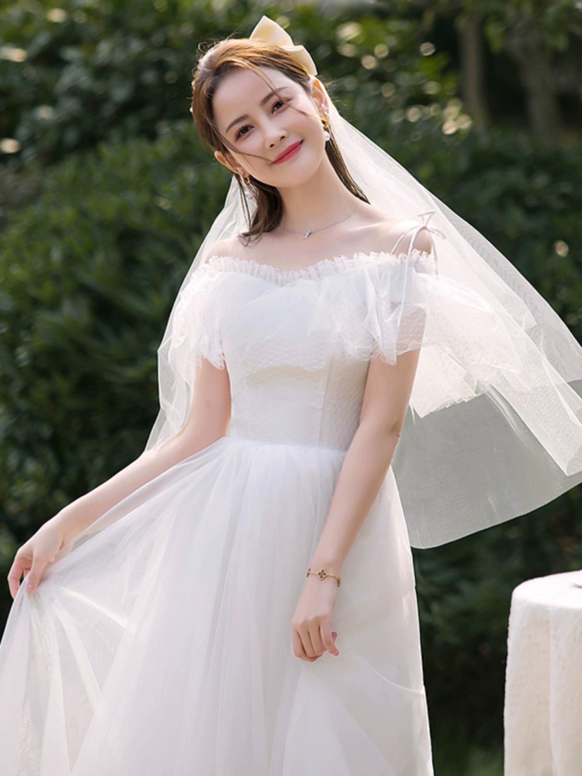 Vestido de noiva leve Mori com ombros à mostra 2025, vestido de noiva simples estilo francês, princesa branca, super fada, para viagens ao ar livre