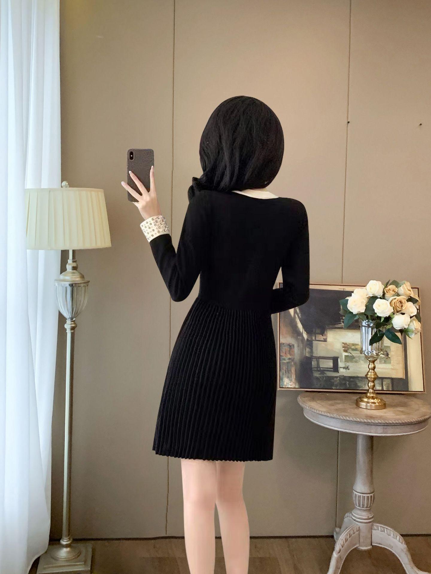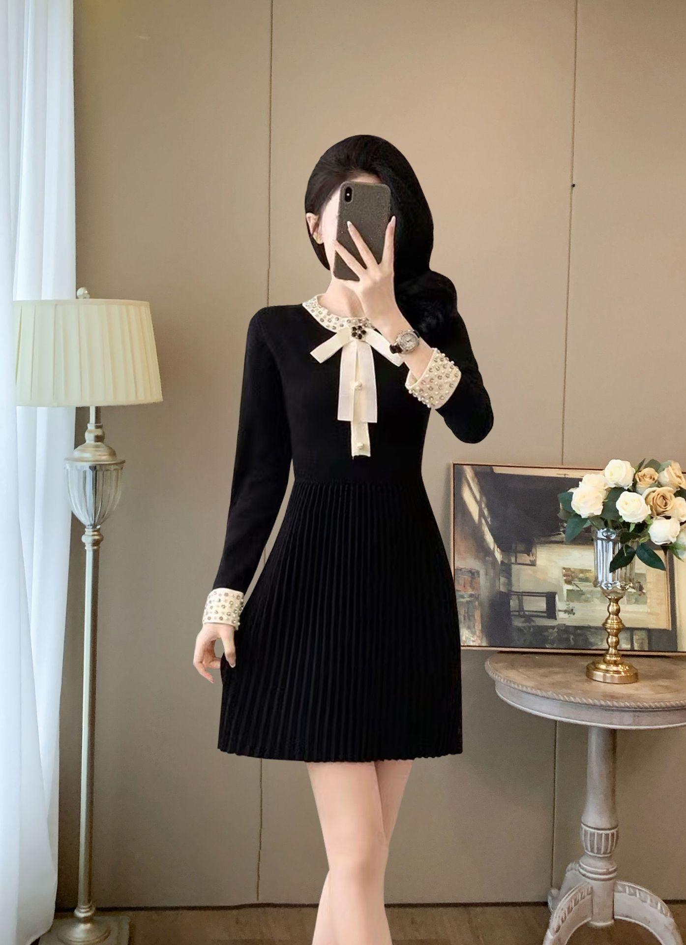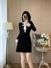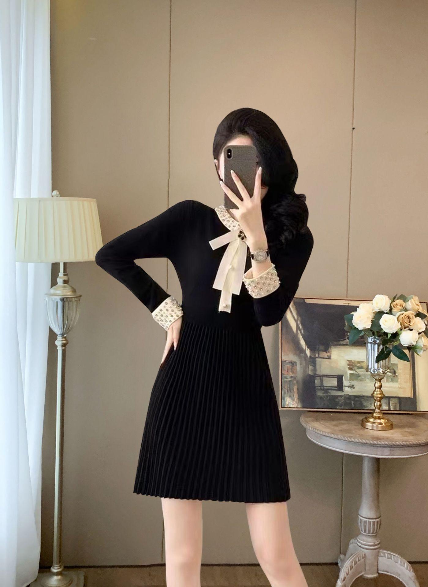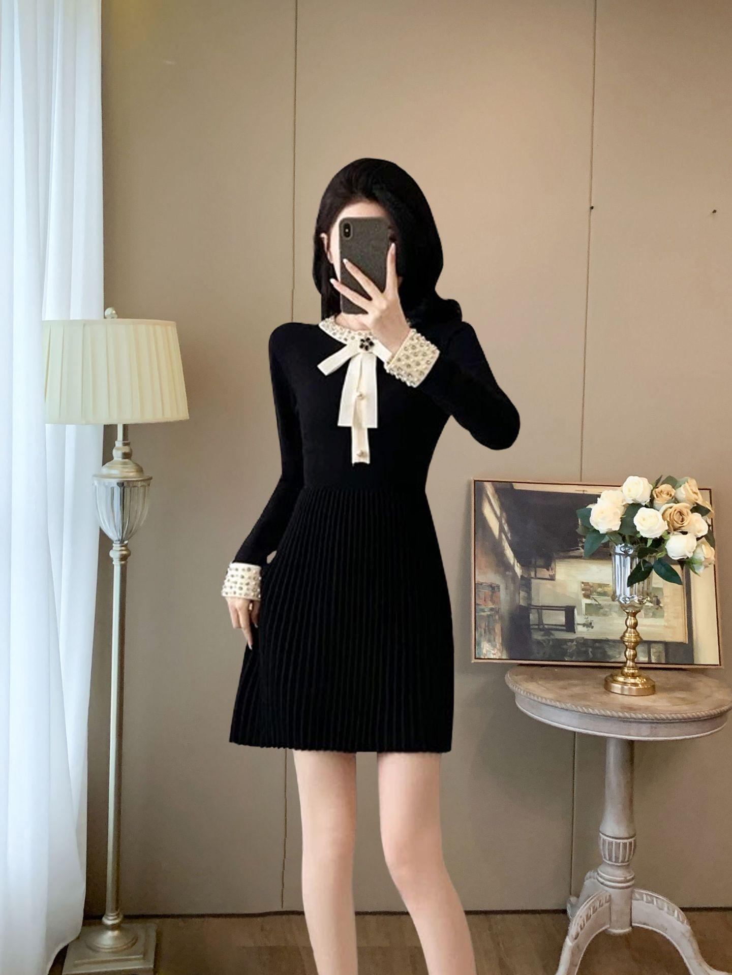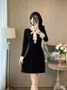 Elegante Vestidinho Preto Estilo Hepburn Francês 25 Novo Elegante Redutor de Idade Elegante Acessível Luxo Gola Redonda Saia A-Line com Miçangas