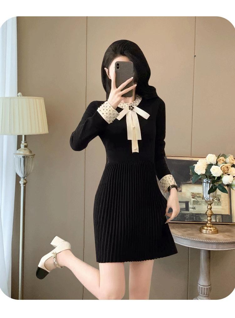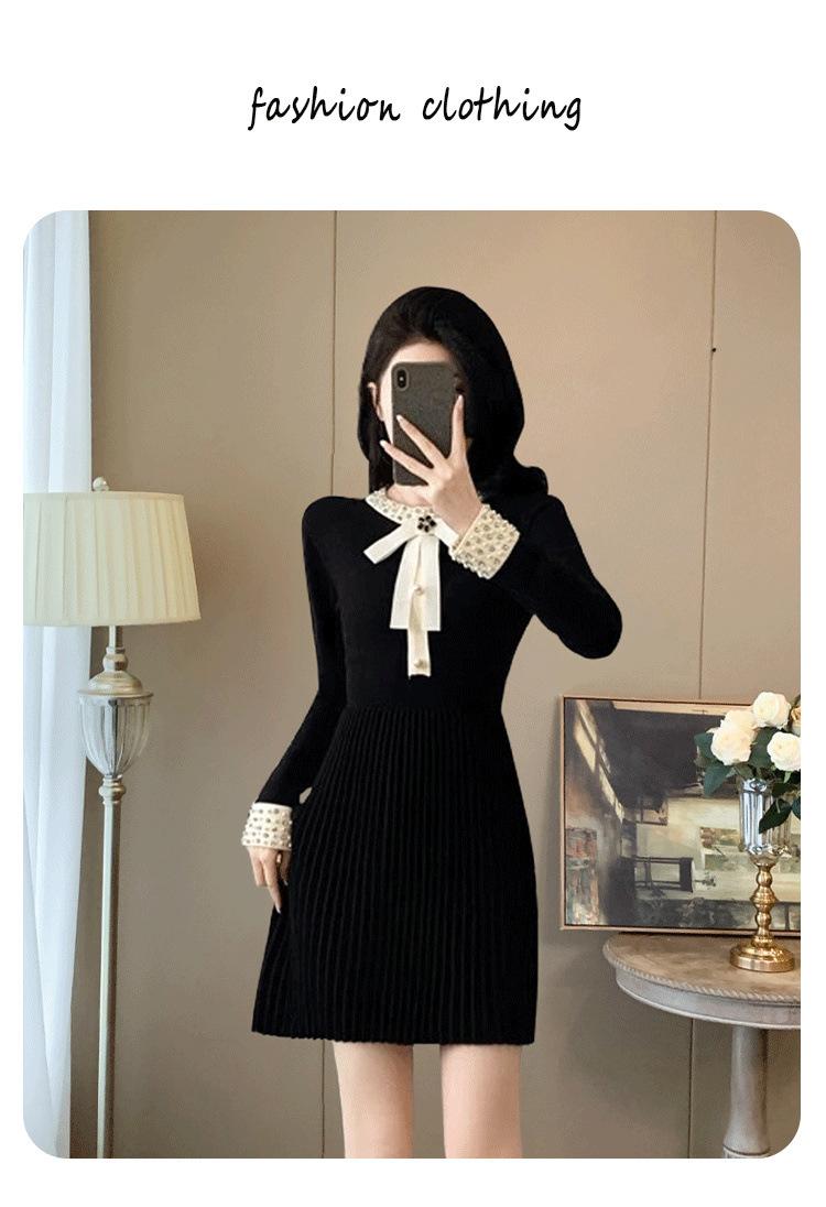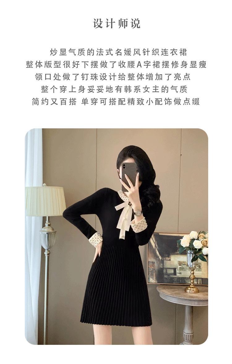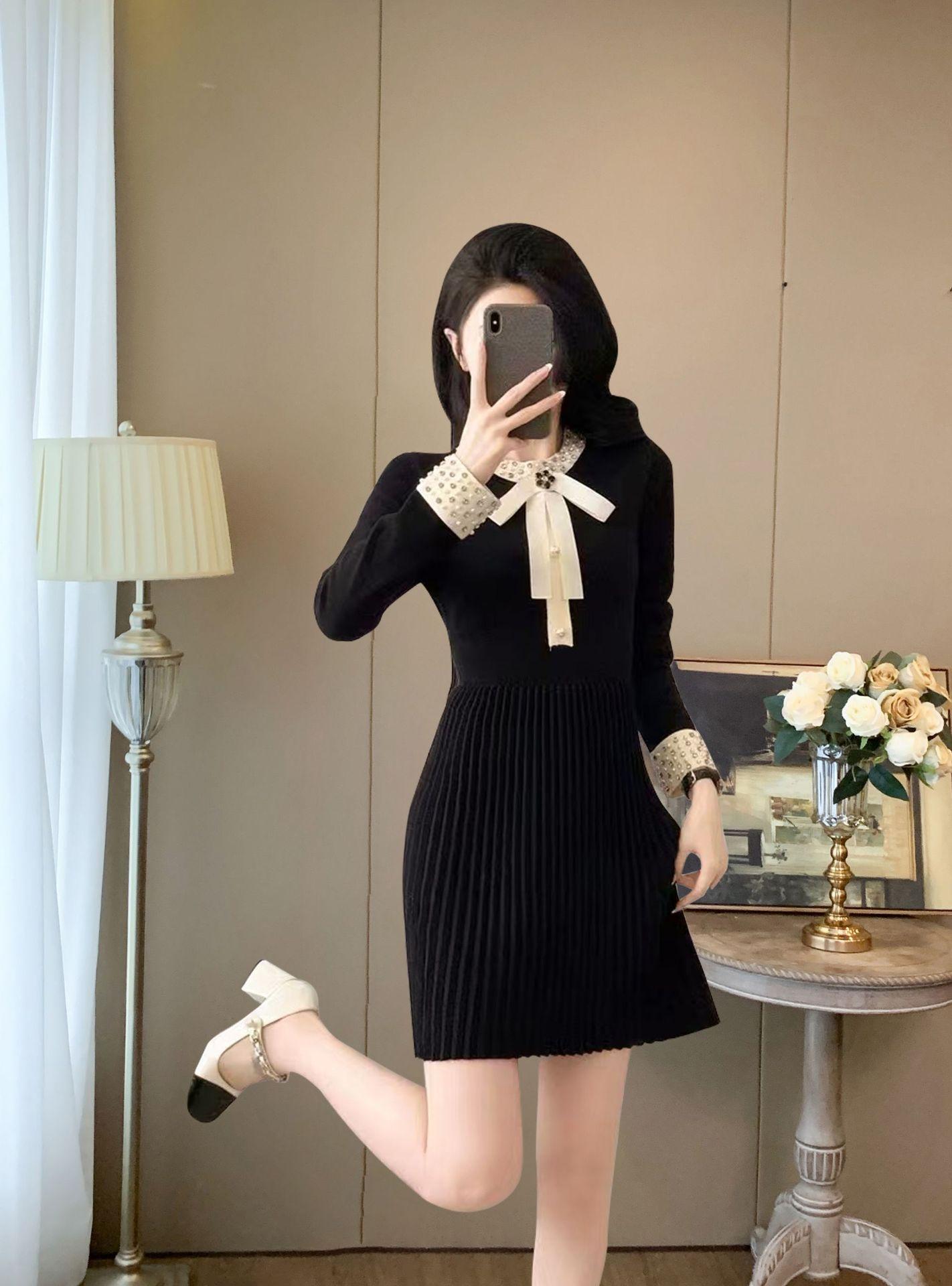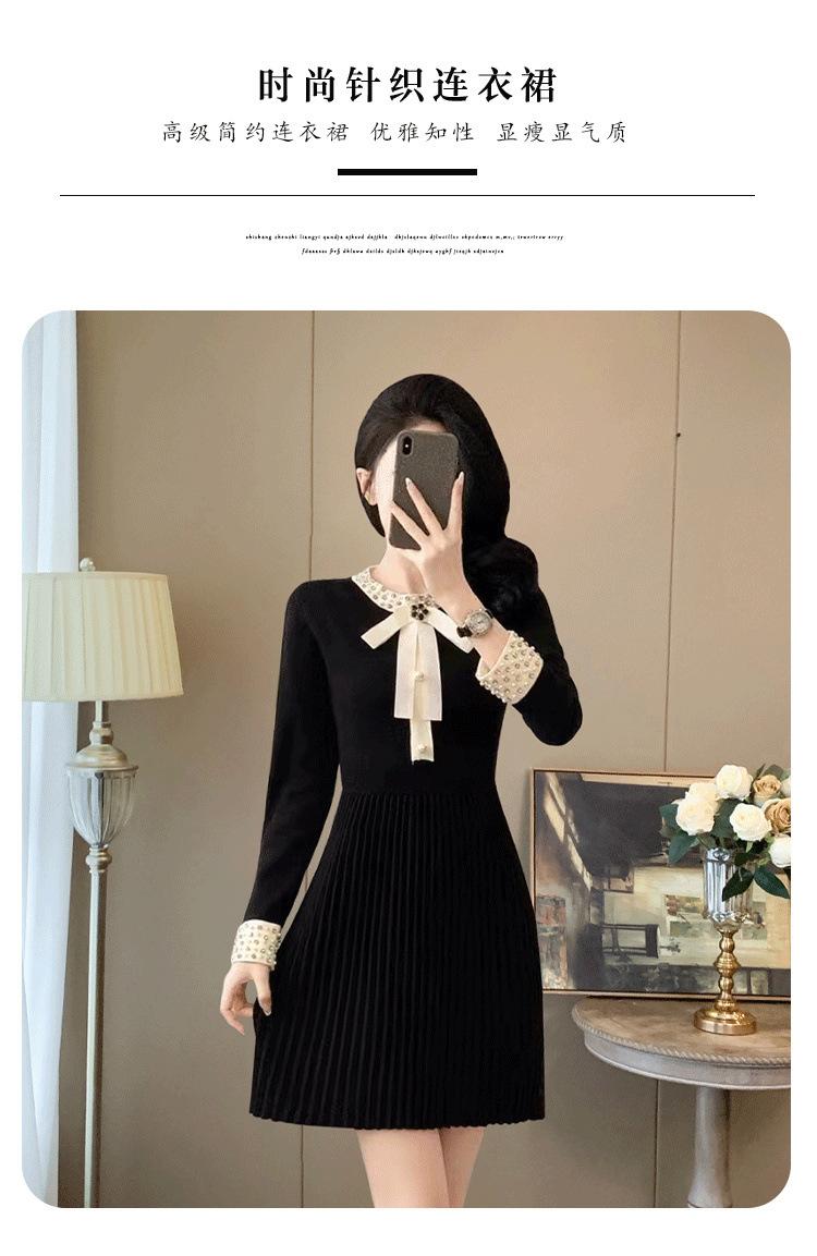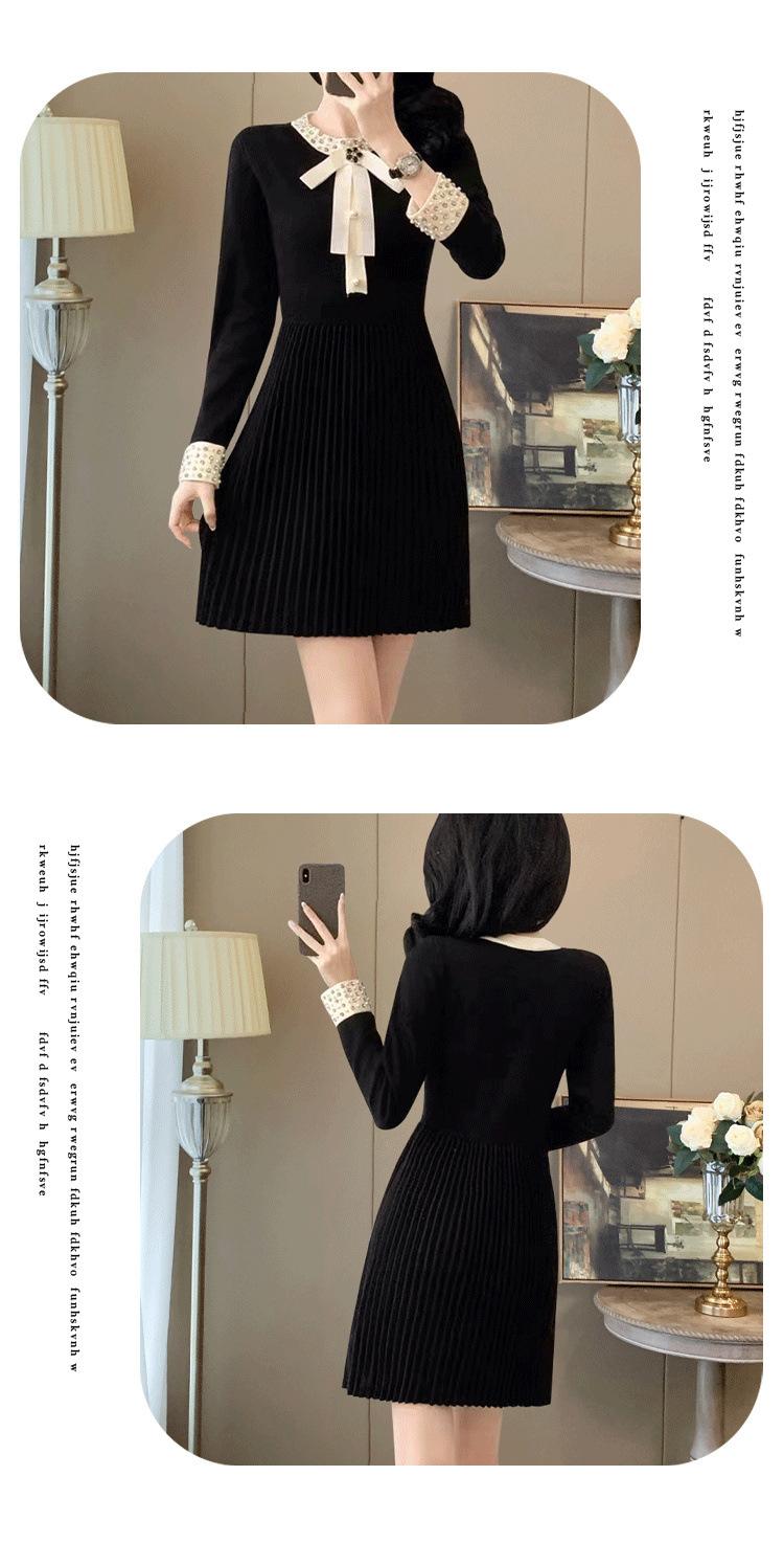 Elegante Vestidinho Preto Estilo Hepburn Francês 25 Novo Elegante Redutor de Idade Elegante Acessível Luxo Gola Redonda Saia A-Line com Miçangas
